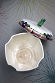 Gammel Aluminia fajance låg krukke med ugle på toppen.