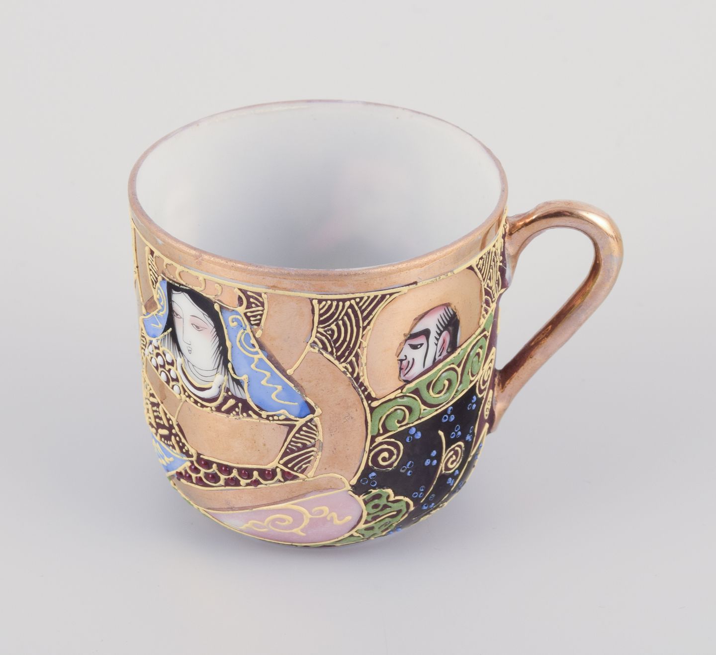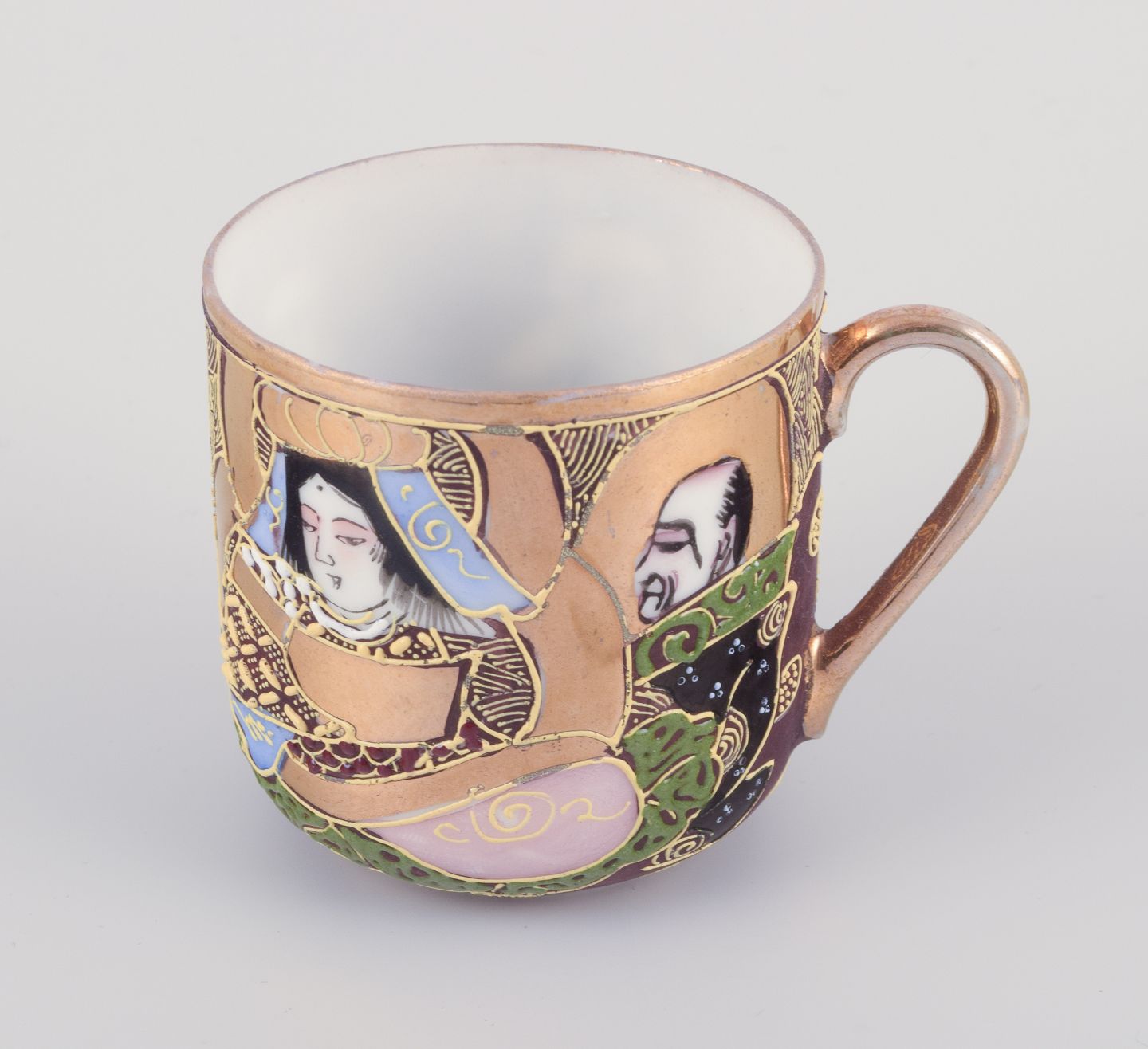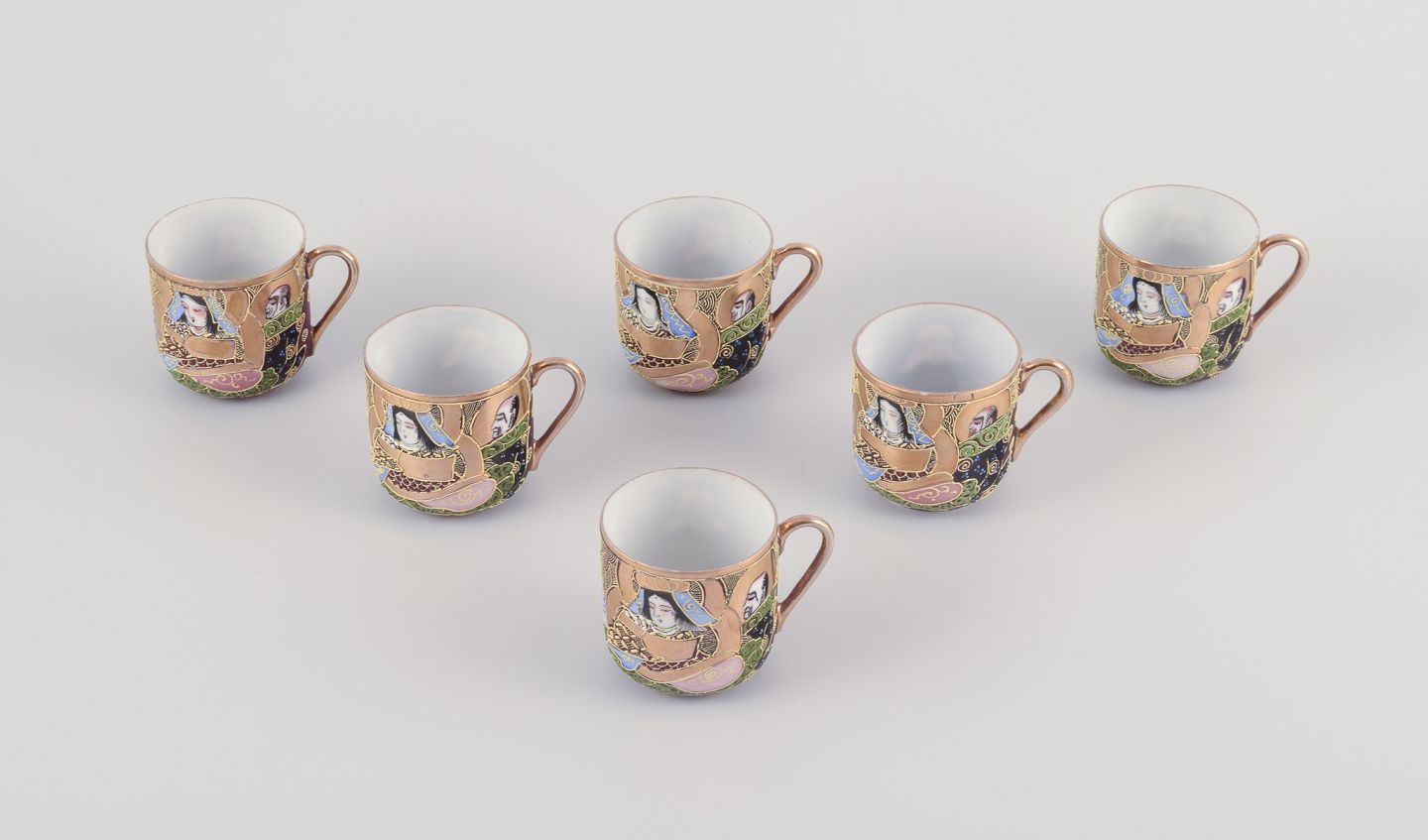Satsuma, Japan. Seks små tekopper. Hånddekoreret porcelæn med klassiske scenerier.