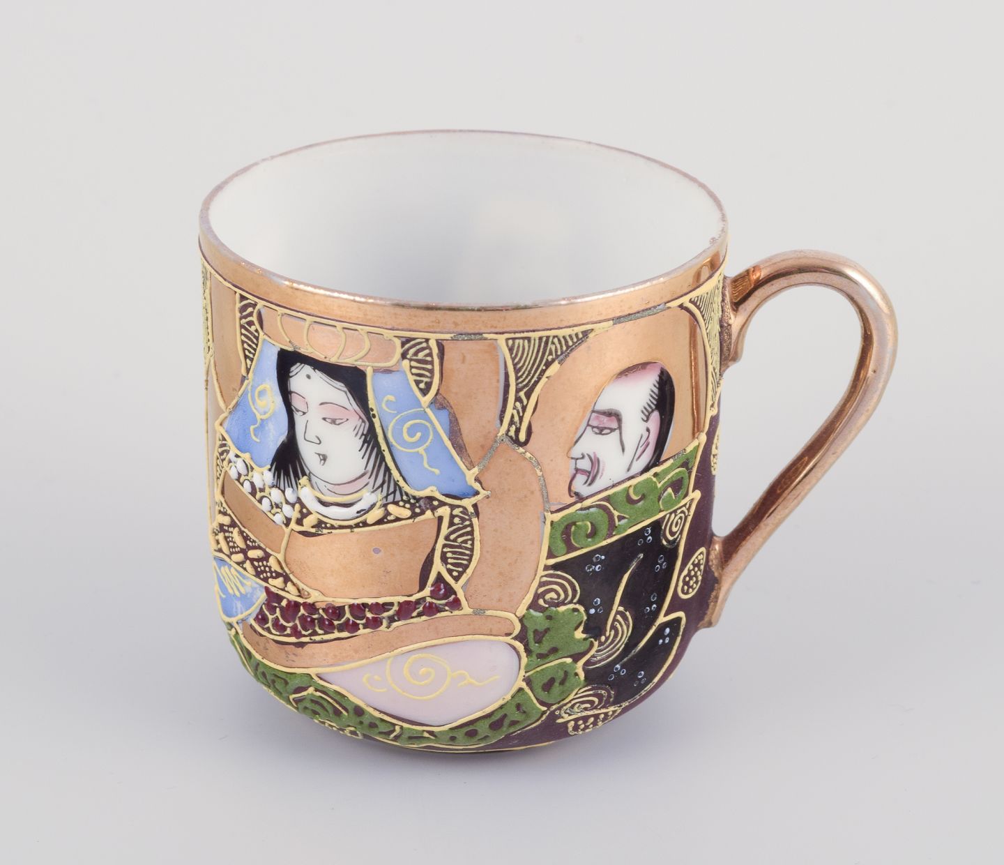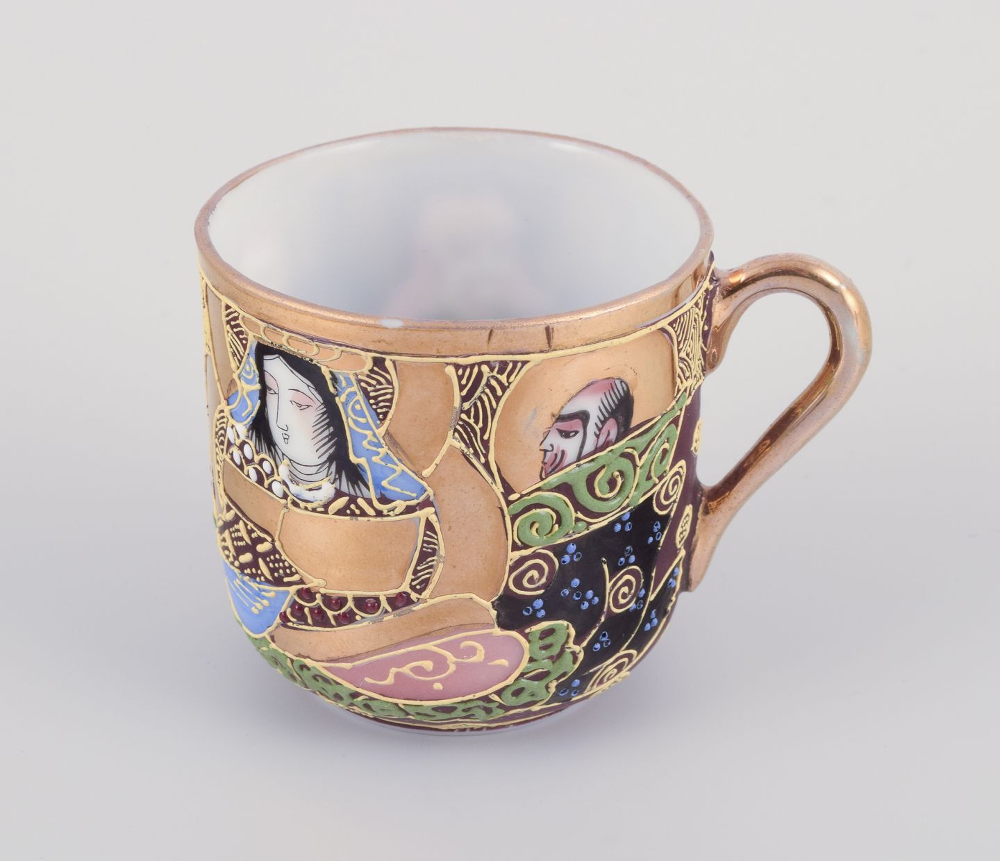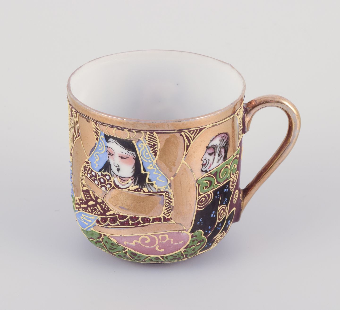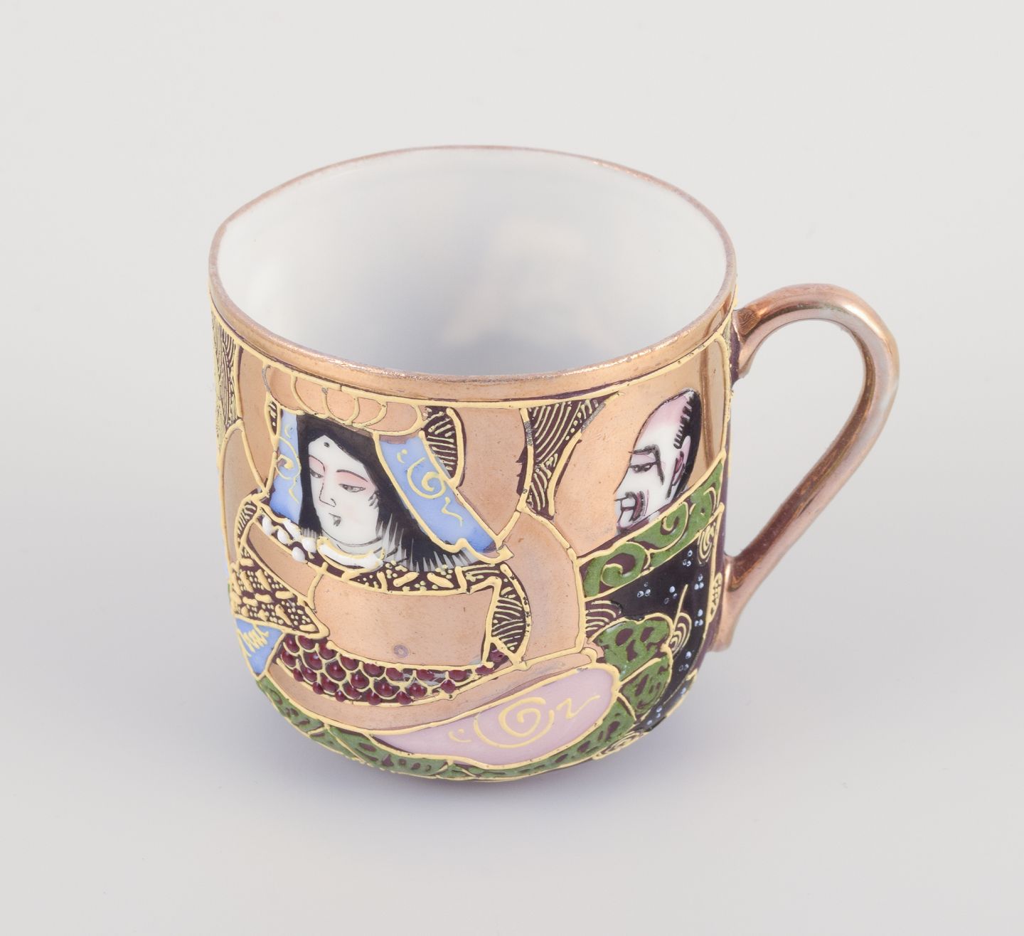 Satsuma, Japan. Seks små tekopper. Hånddekoreret porcelæn med klassiske scenerier.