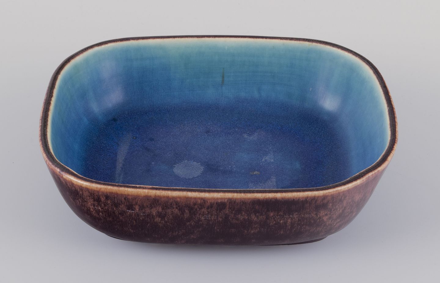 Stor rektangulær skål af keramik.