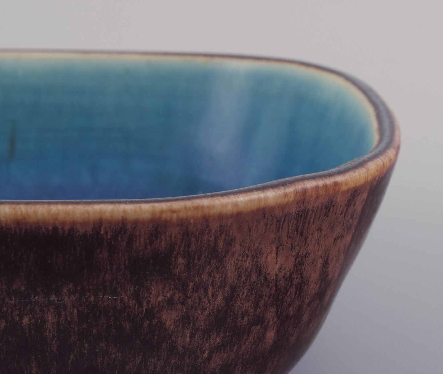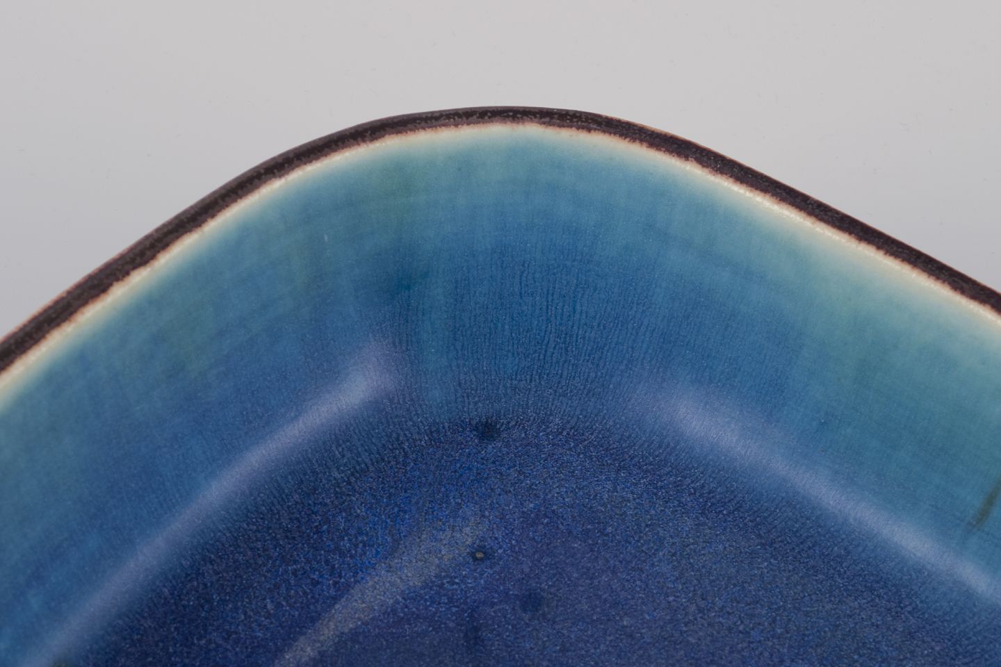 Håndglaseret i brune, blå og grønne nuancer.