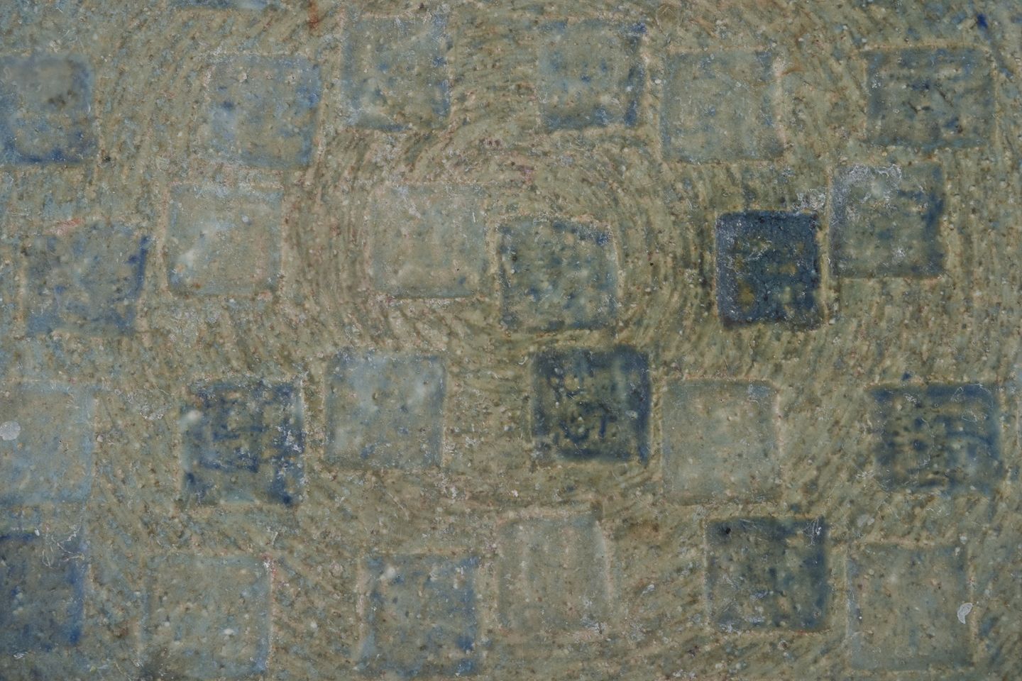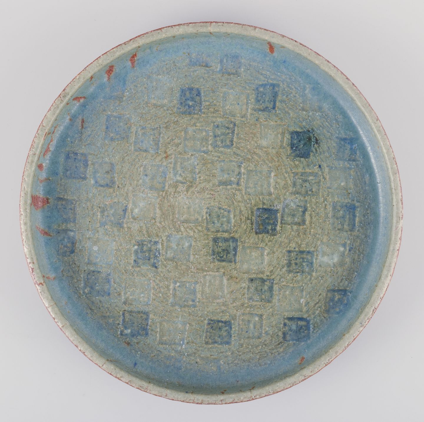 Eva Stæhr-Nielsen (1911-1976) for Saxbo. Stort fad af stentøj, dekoreret med blå og grøn glasur.