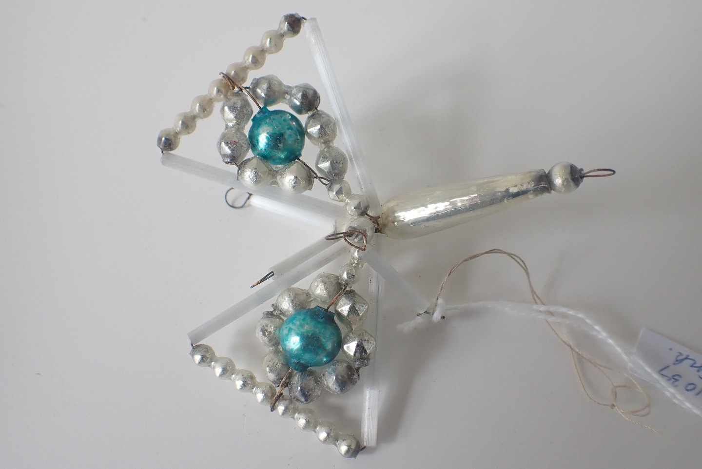 Nederst til venstre: Stjerne sammensat af glaskugler og glasrør. Ca. 1950. Pris: 95 kr.