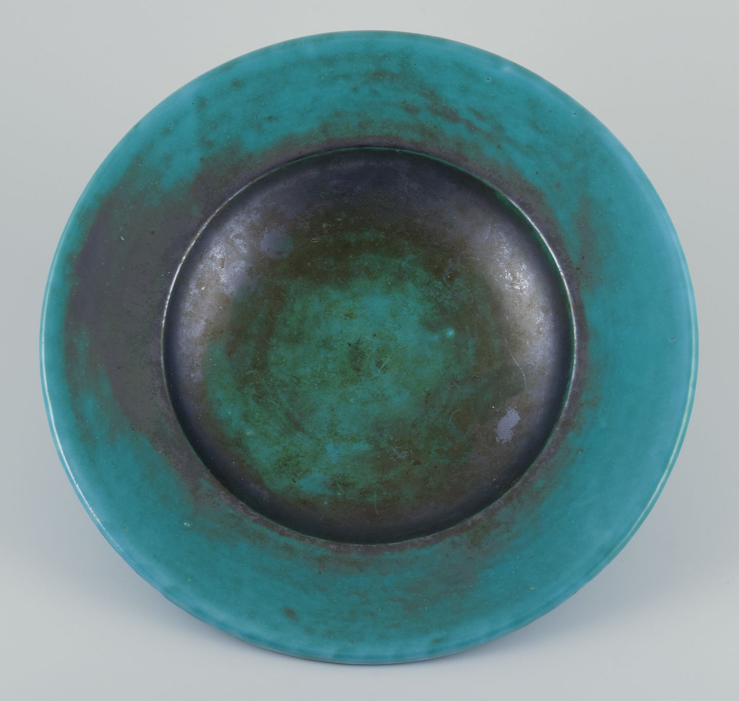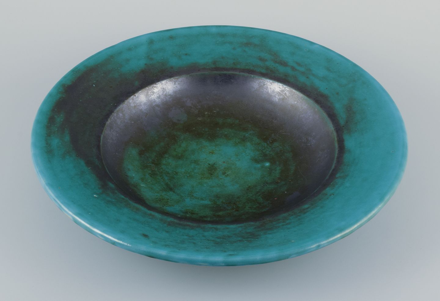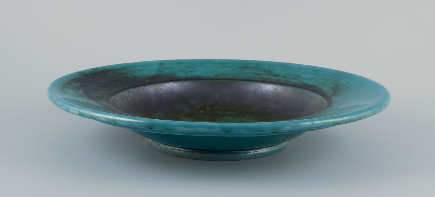 Stor skål af glaseret stentøj.