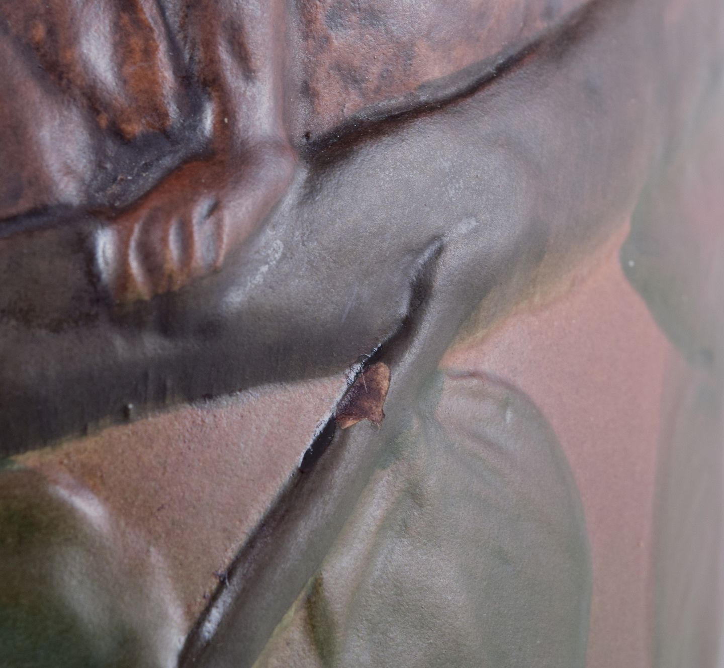 Ipsens Enke, keramikvase med egern, glasur i orange og grønne toner.