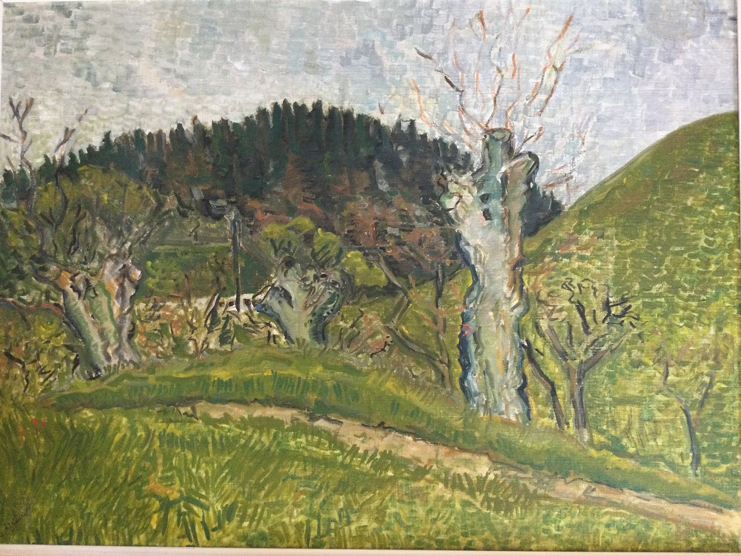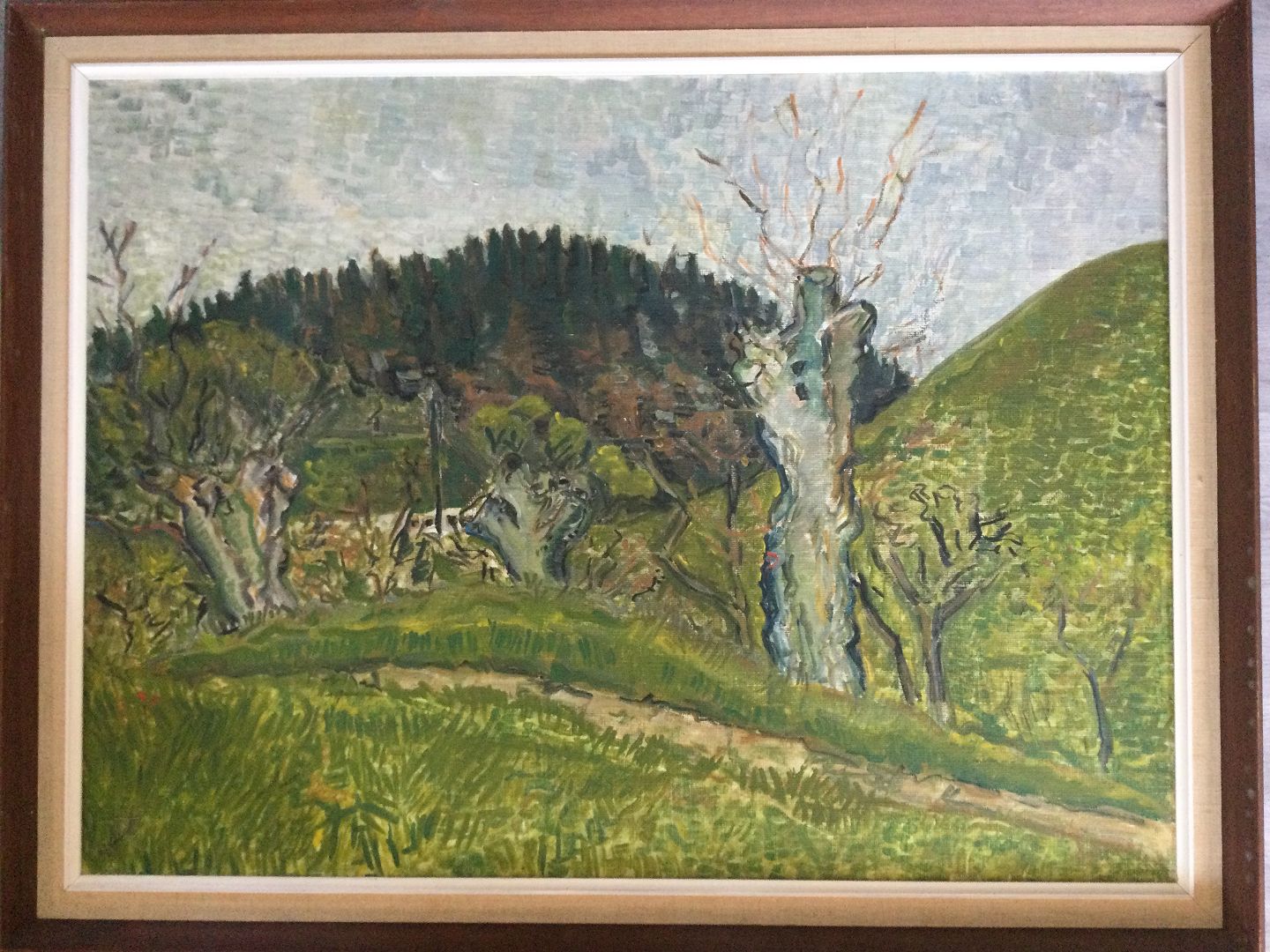 Maleri af Morten Johannes Assels - Gamle Popler, Toggerbo, Mols 1964.