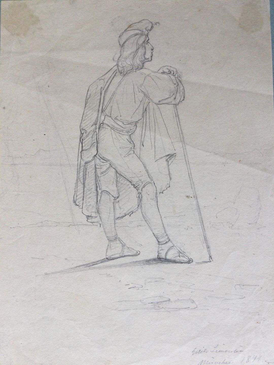 Tegning af Niels Simonsen - Stående arabisk mand 1844.