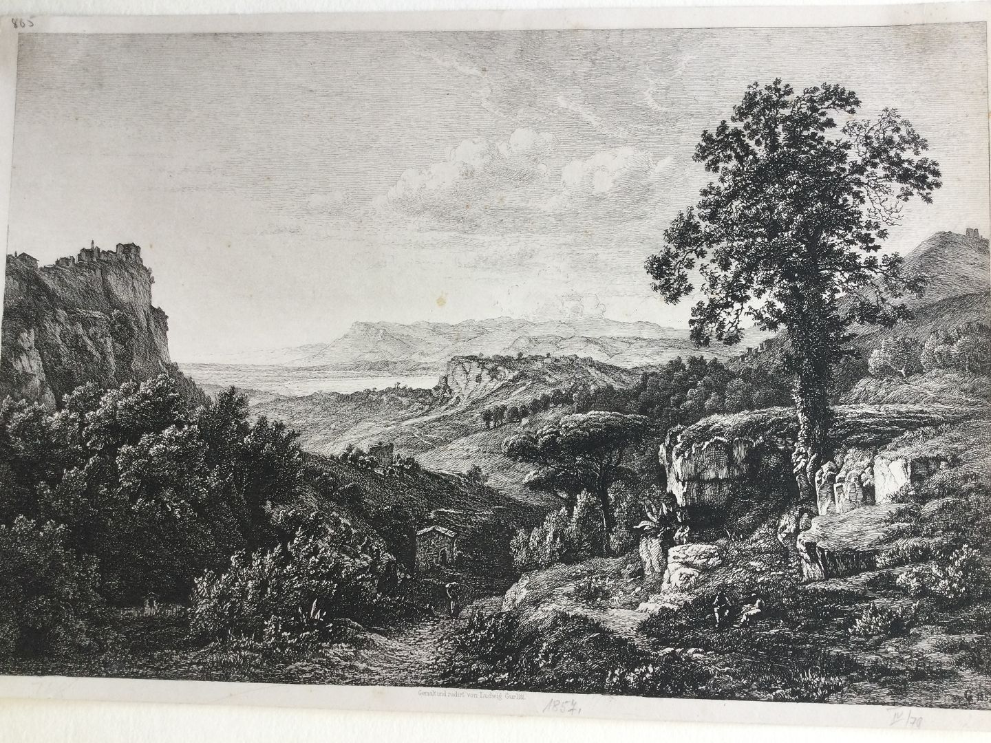 Radering af Louis Gurlitt - Fra Sabiner-bjergene, Italien 1857.