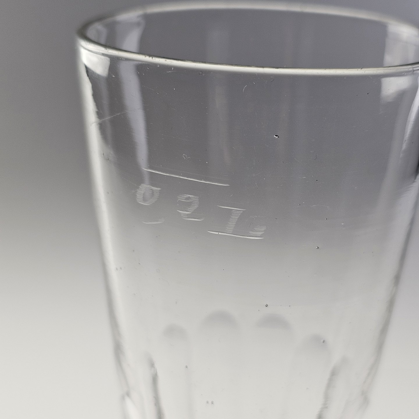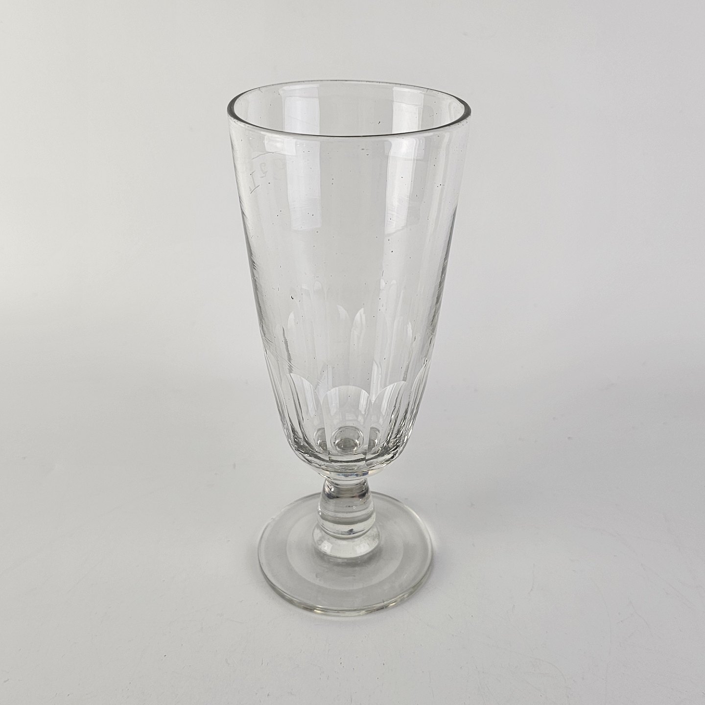 Vinglas i klart glas, opdrevet og kugleslebet i bund. Med olivenslibninger