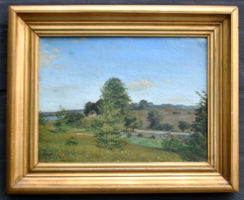 Von Heinrich Christian (1811 - 1879) Dänemark: Landschaft mit Haus am See. Öl auf Leinwand. Signiert: Monogramm 1877. 28 x 36 cm.