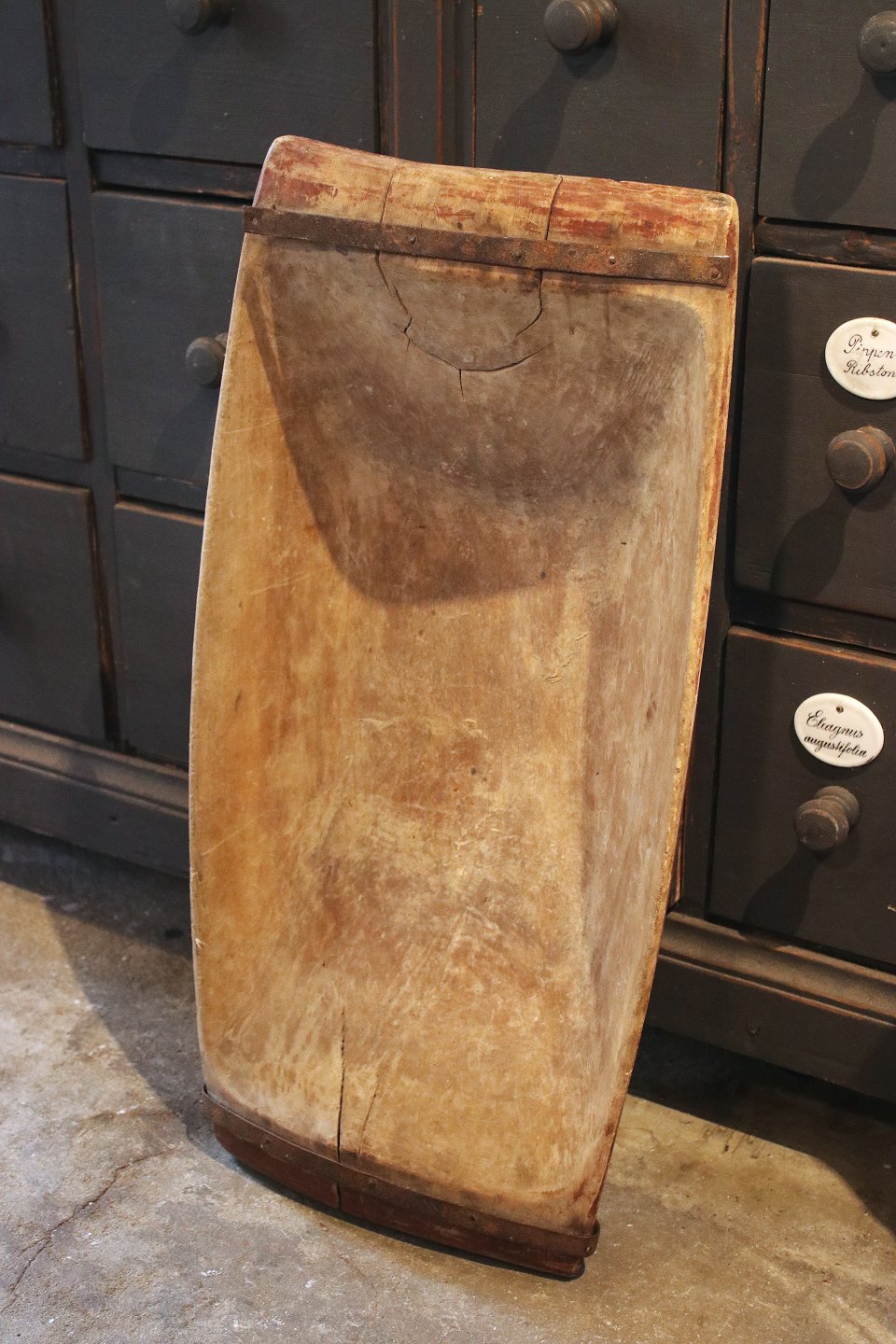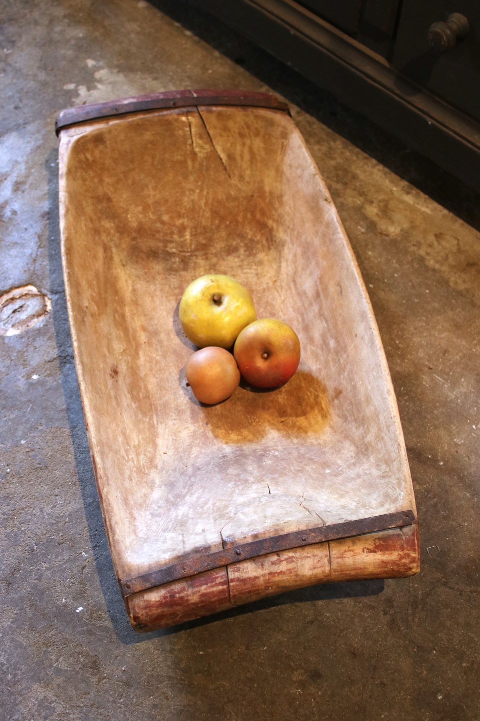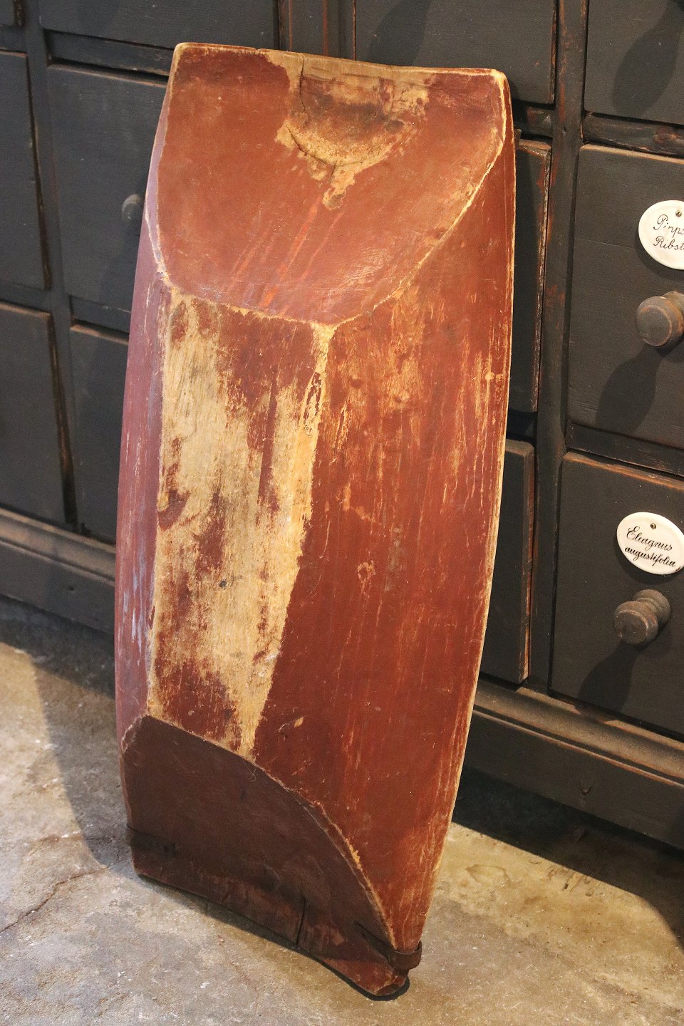 Svensk rustikt 1800 tals træfad med original farve og med en rigtig flot patina. H: 15cm. L: 70cm. B: 33,5cm.