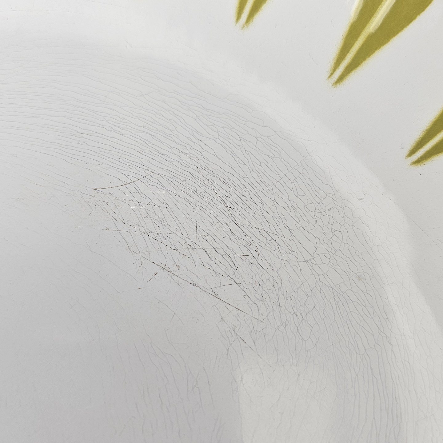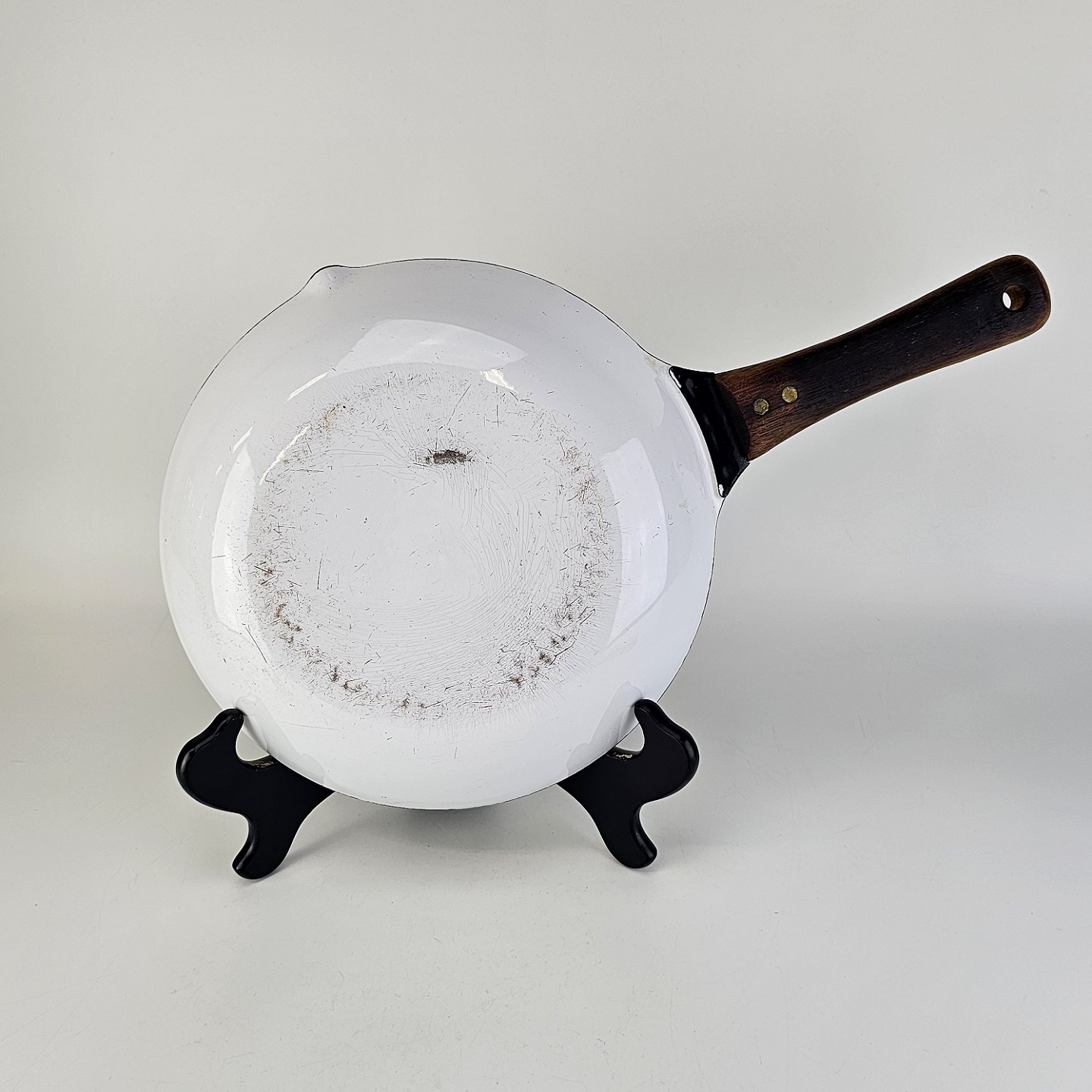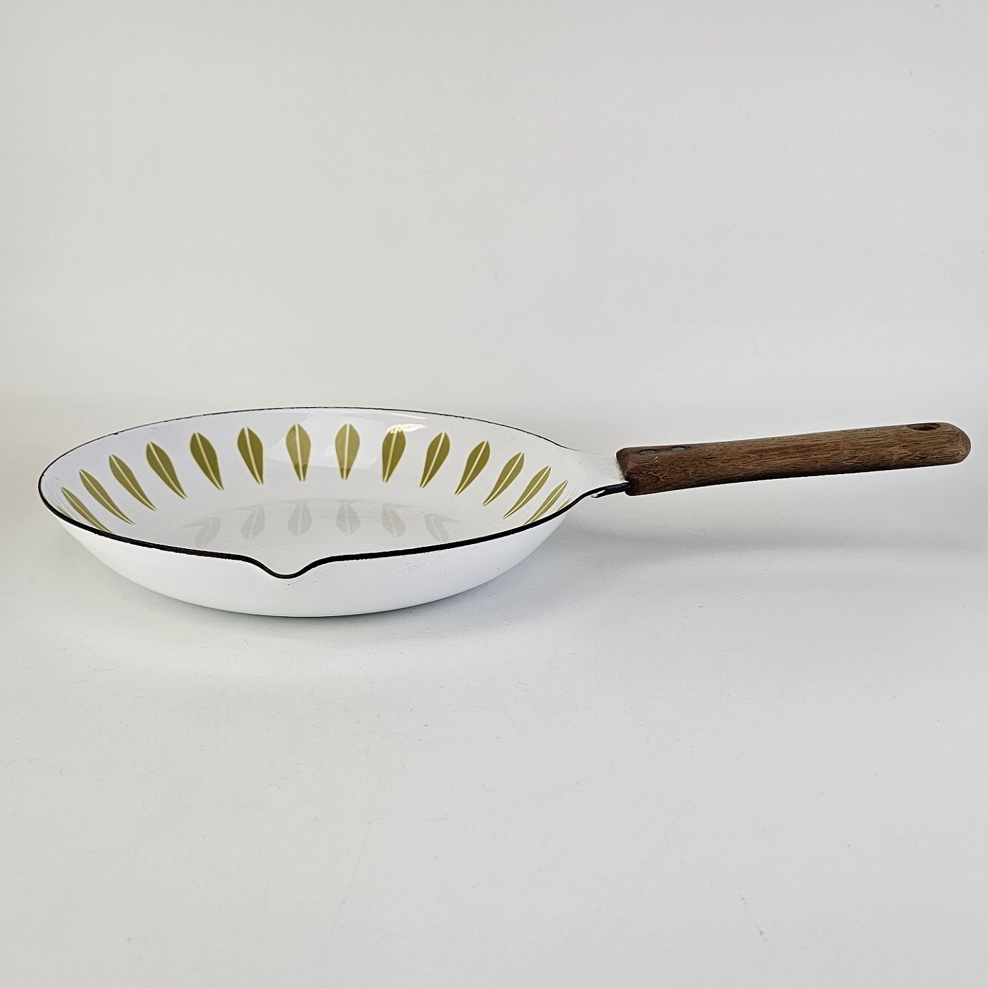 Lotus emalje pande med grønt motiv og håndtag i træ