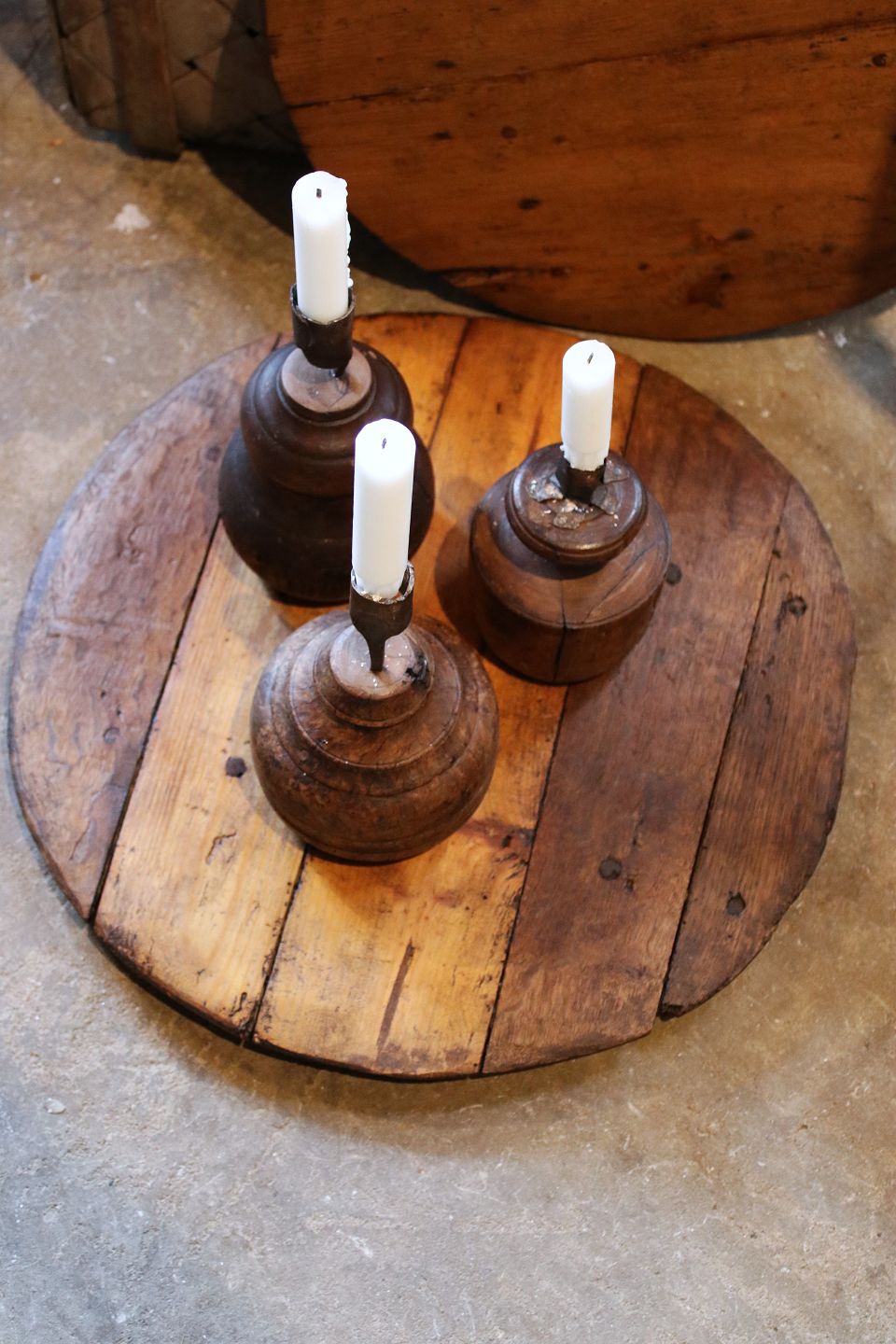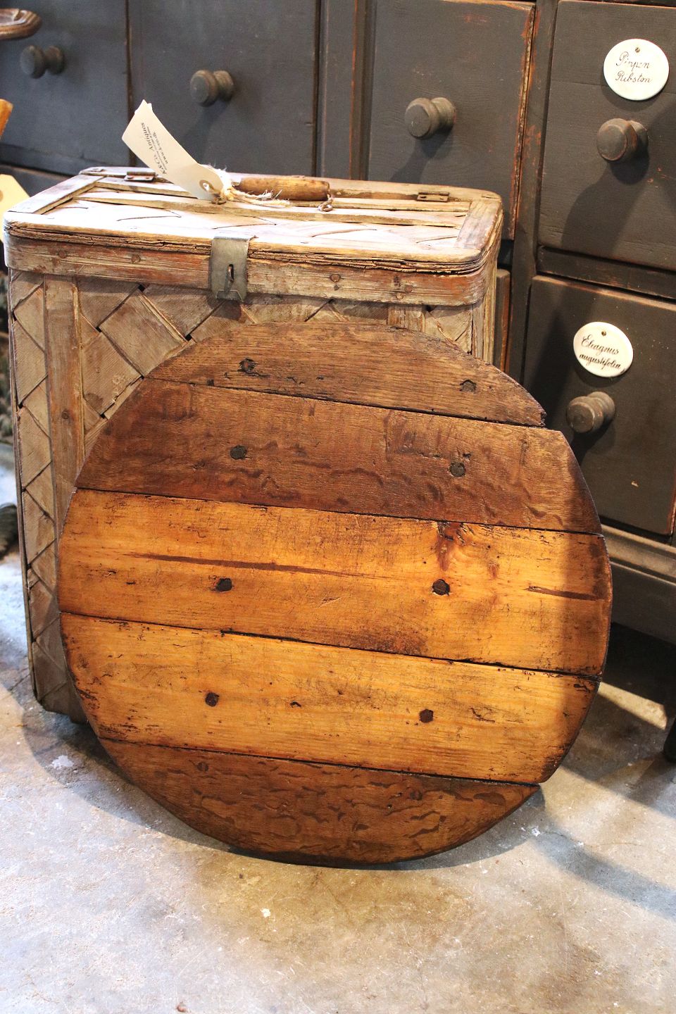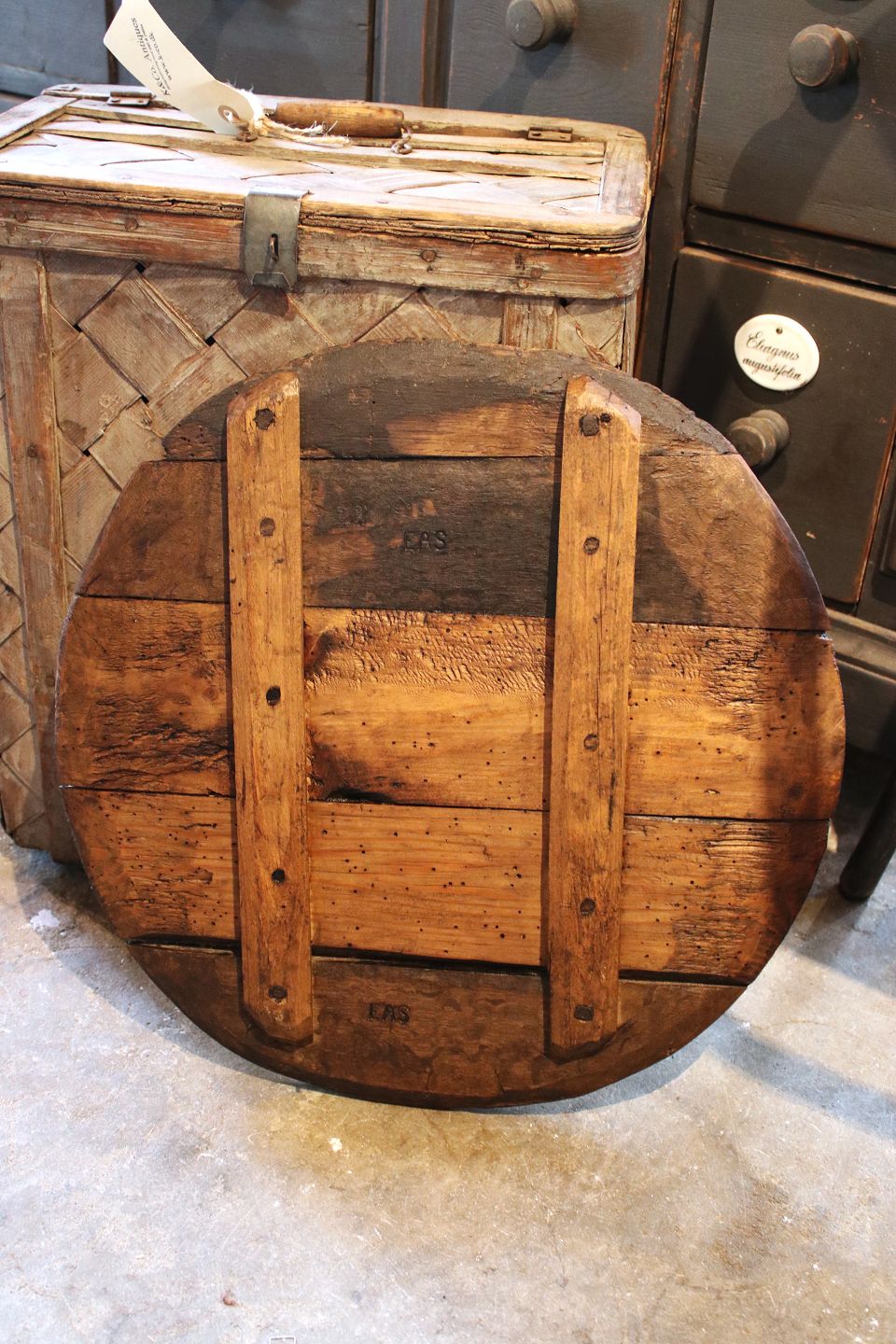 Svensk 1800 tals rund træplade i træ med en rigtig fin patina.