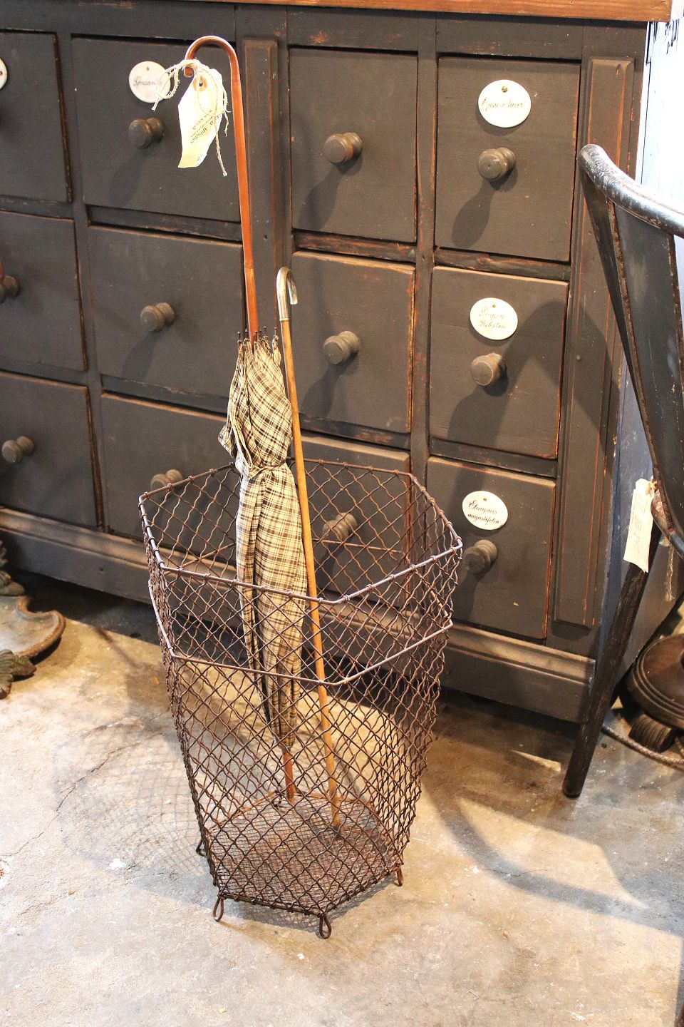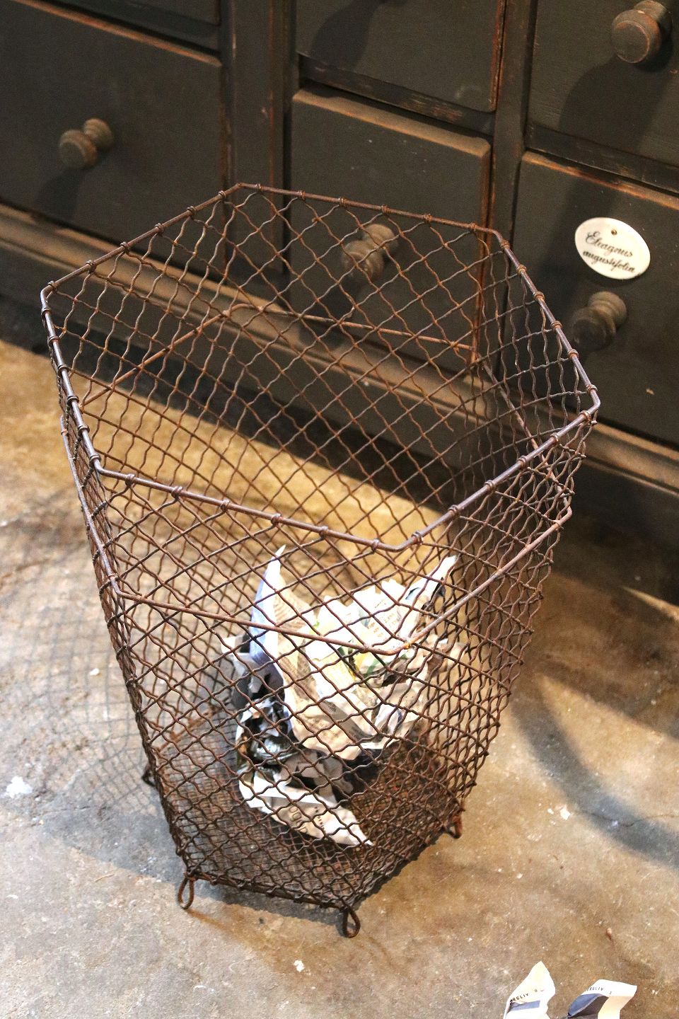 Gammel 6 kantet fransk papirkurv i Fil de Fer med en rigtig fin patina.