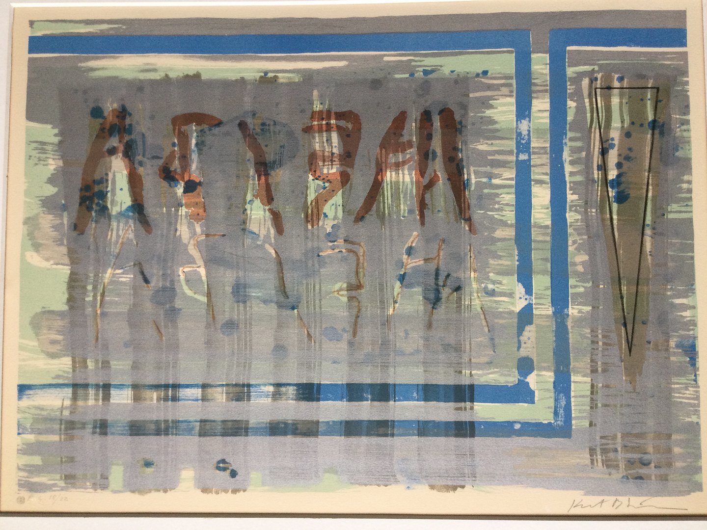 Farvelitografi på papir monteret i passepartout.