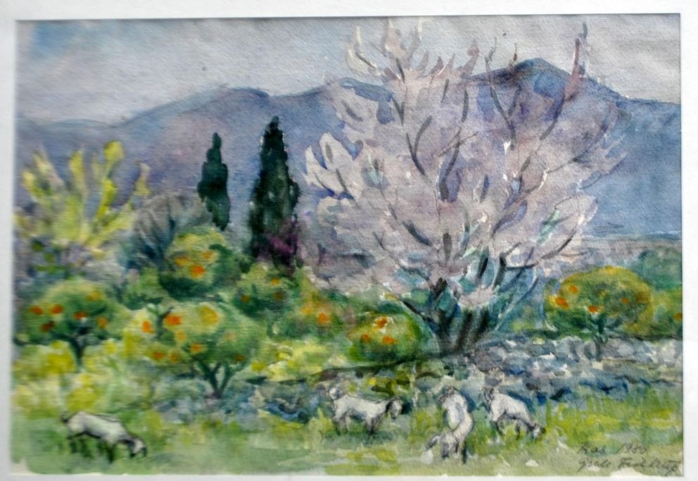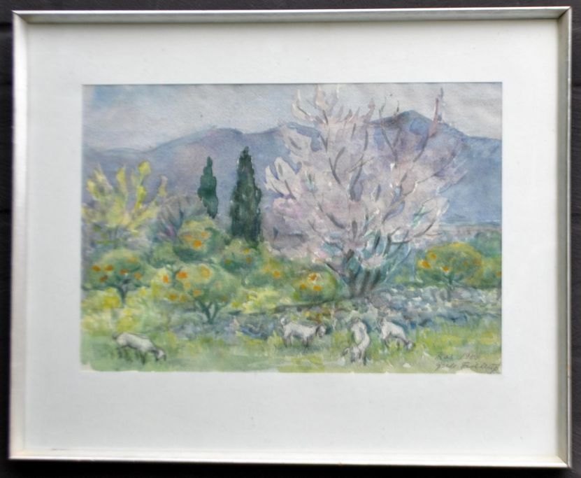 Fristrup, Grete (1905 - 1995): Landskab, Kos, Grækenland. Akvarel på papir. Signeret 1980. 30 x 43 cm .