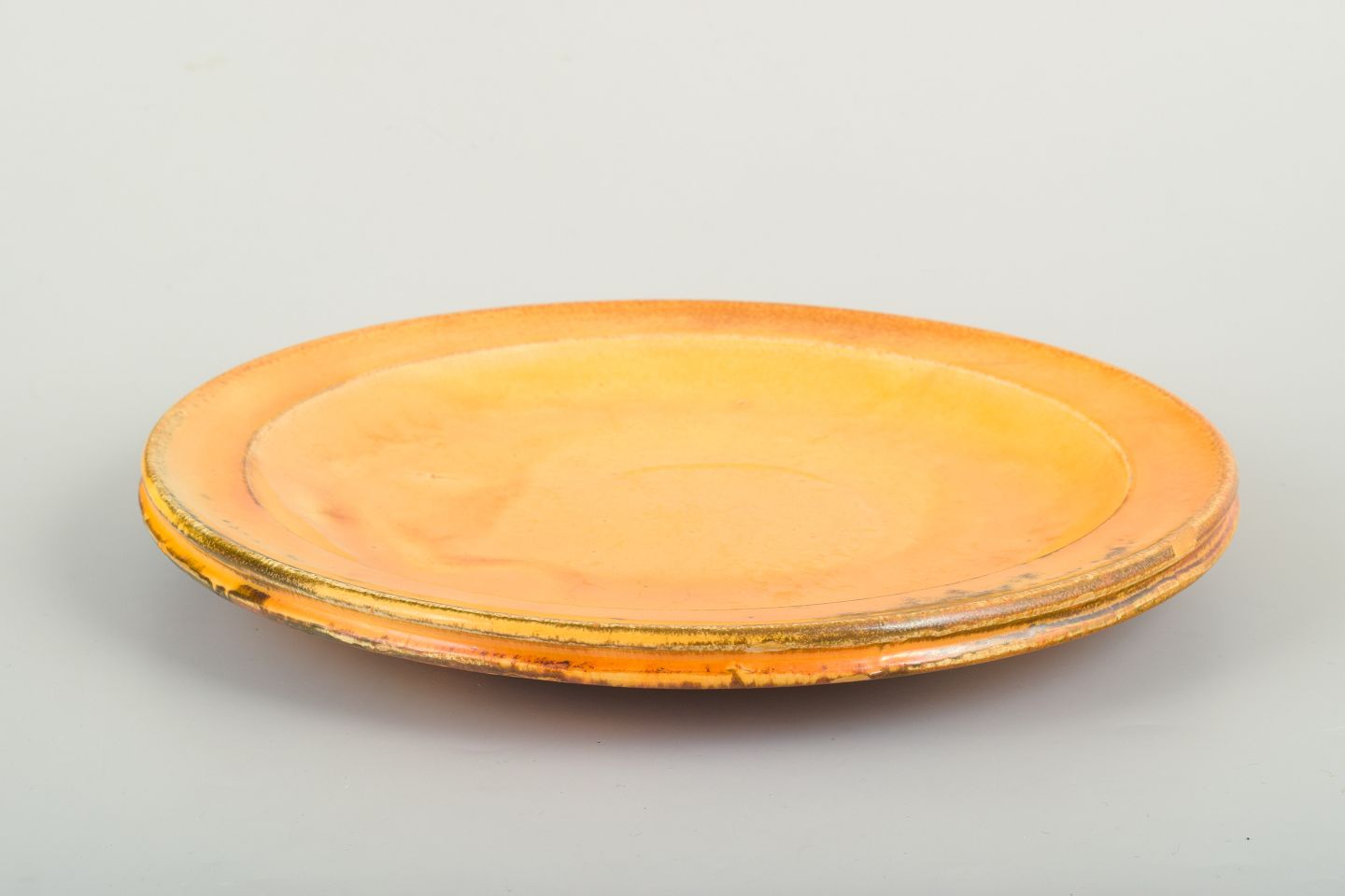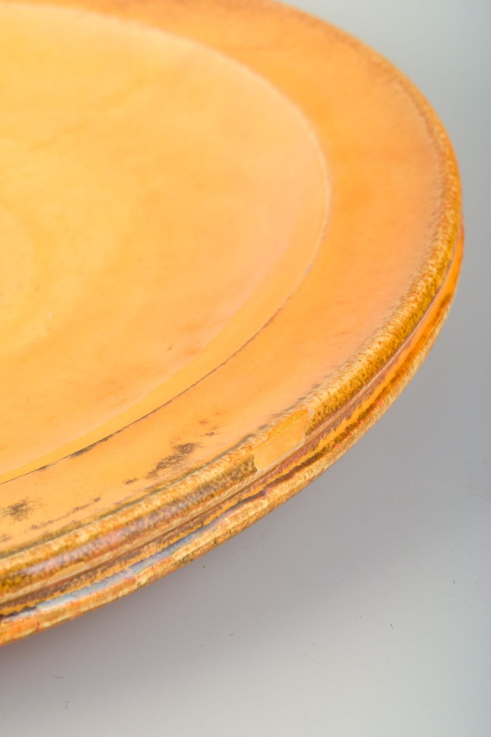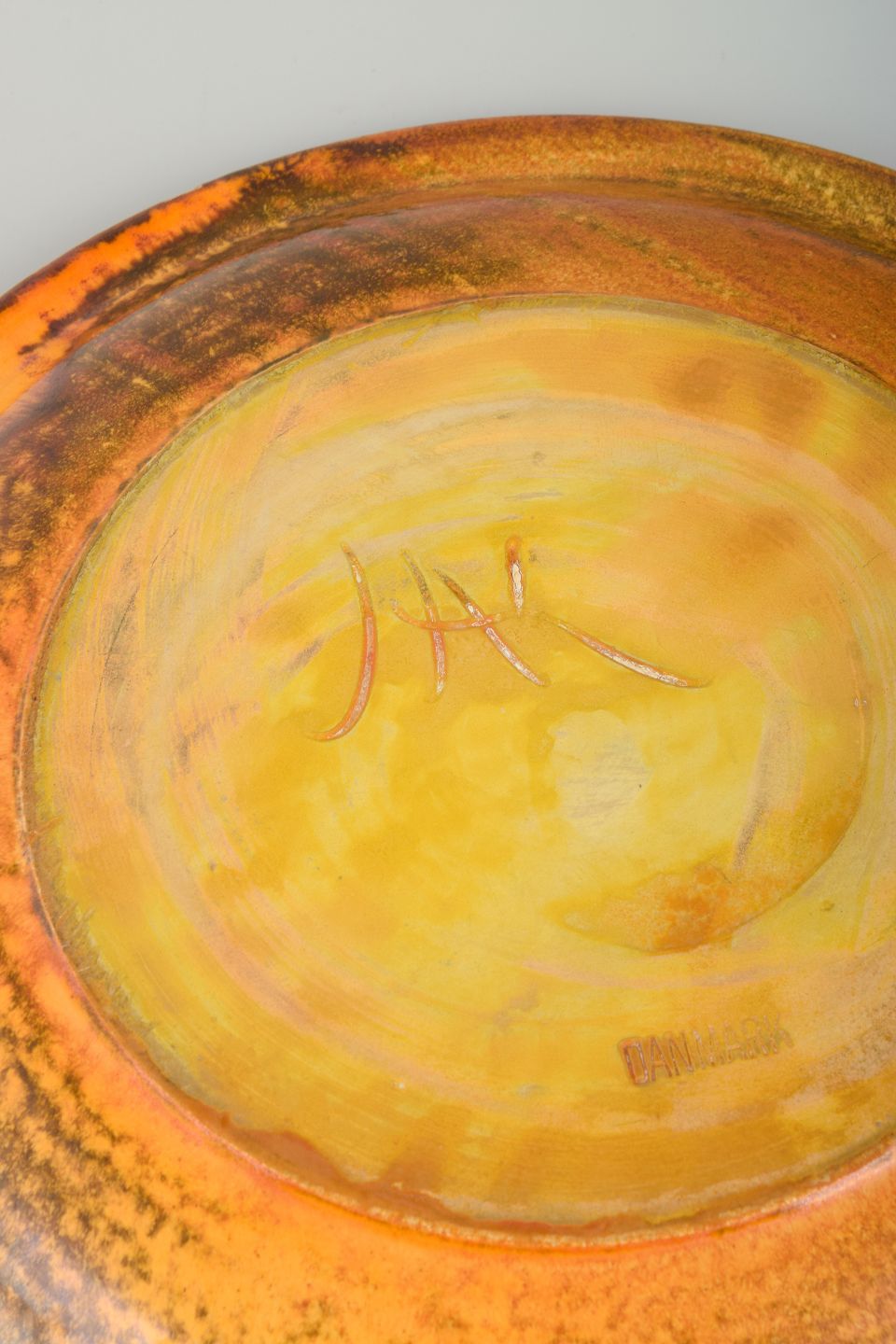 Rundt fad i glaseret keramik. Smuk uranglasur.