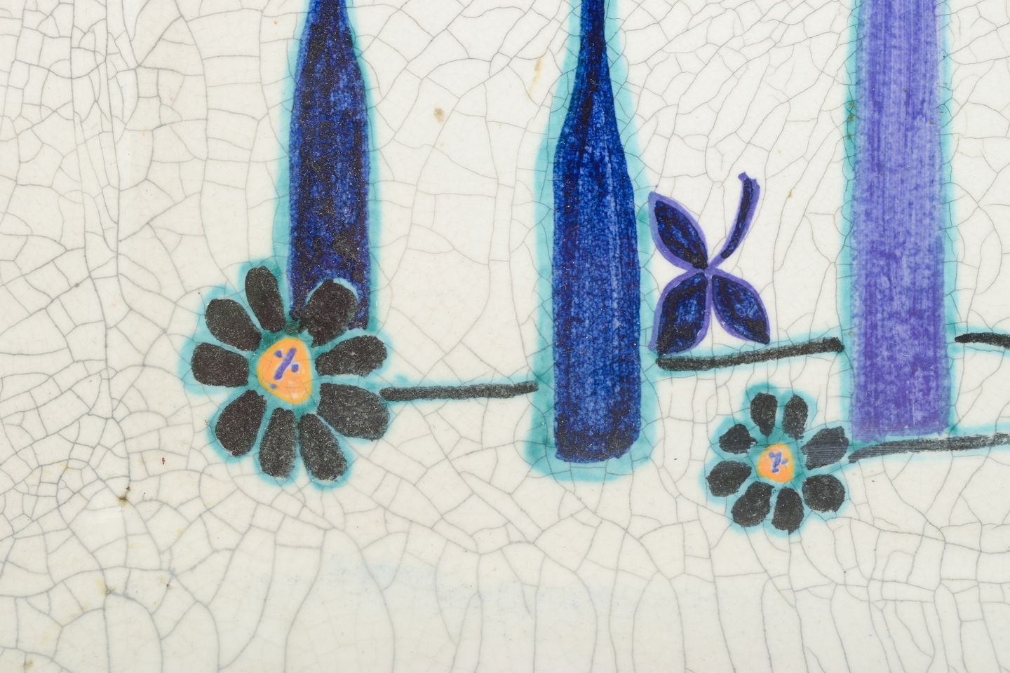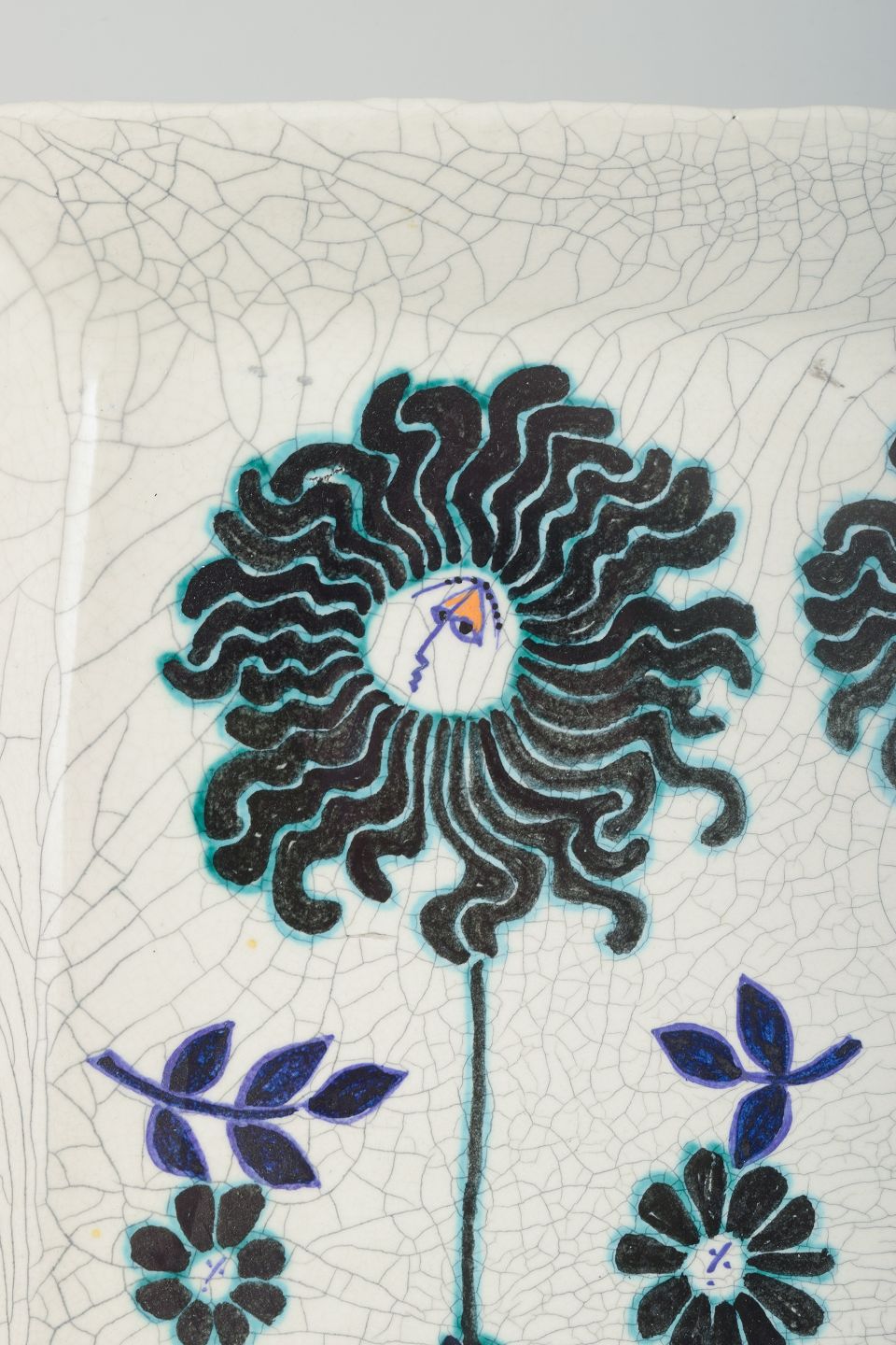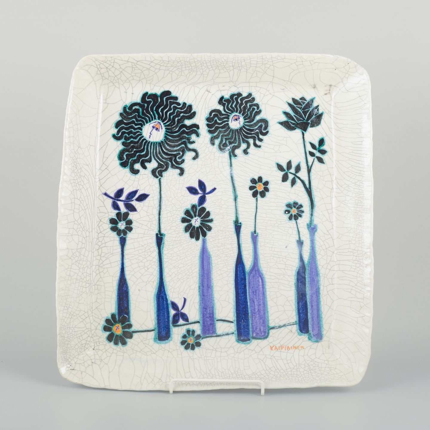 Birger Kaipiainen (1915–1988) for Arabia. Stort dekorativt firkantet fad af keramik, med blomsterdekoration.