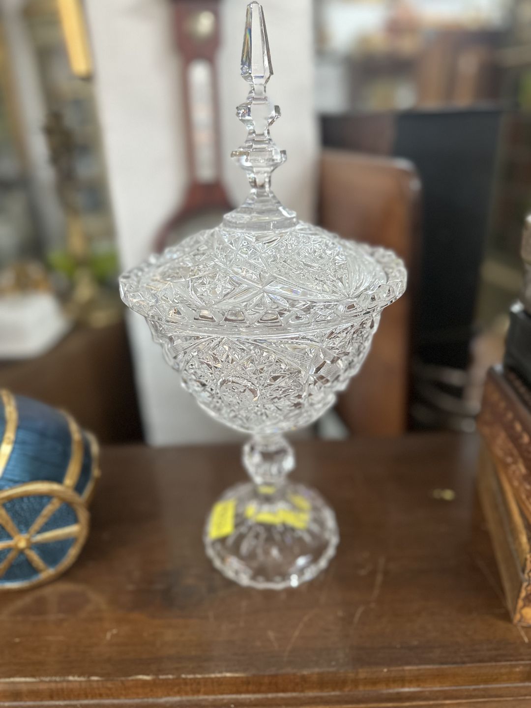 Hofbauers Stor slikskål af presset krystalglas med låg kan bruges som kompot eller som slik skål eller som servering skål ,