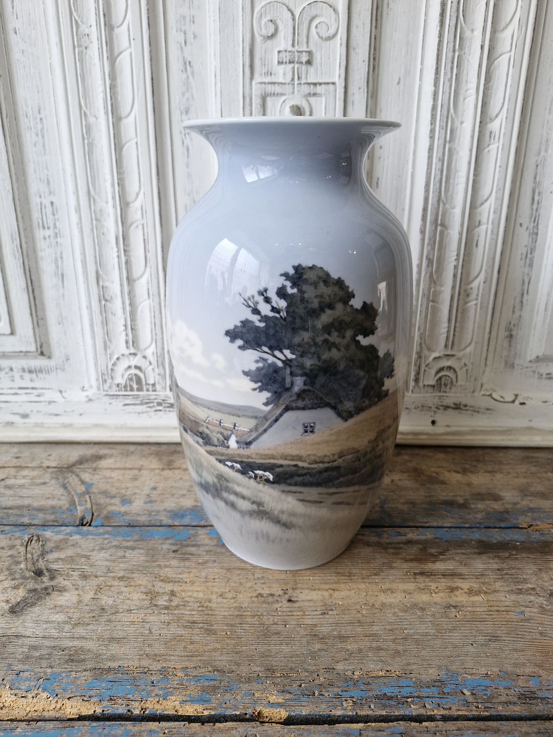 Royal Copenhagen stor vase dekoreret med landskabs motiv