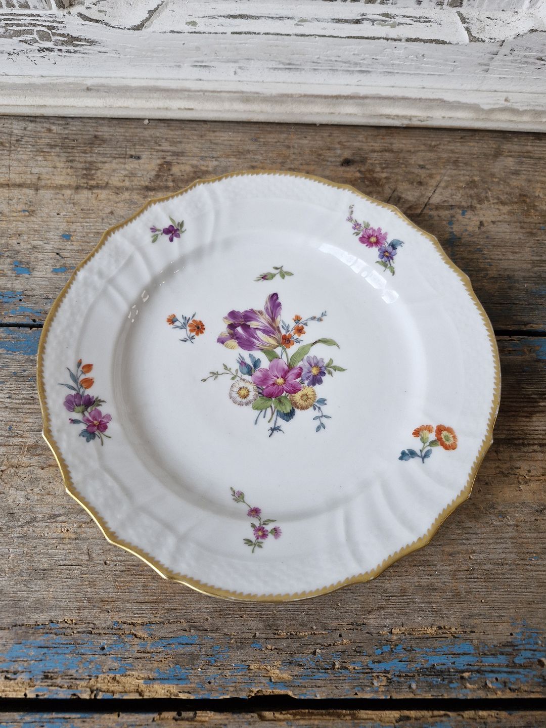 Royal Copenhagen Fuld Saksisk Blomst frokosttallerken 21,5 cm. 1850-98