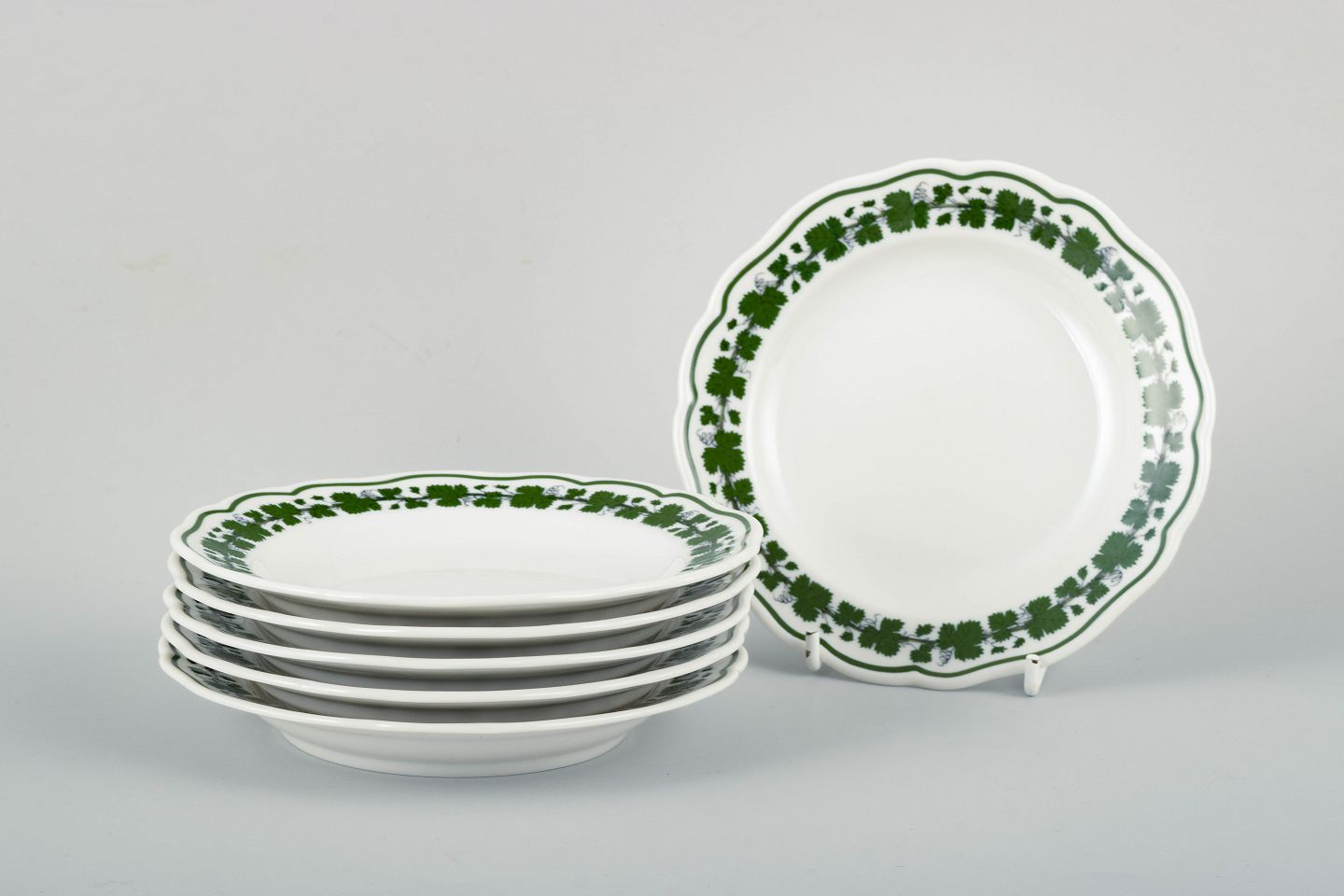 Meissen, 6 små tallerkener, stel Vine-Leaf Pattern, “Voller grüner Weinkranz”