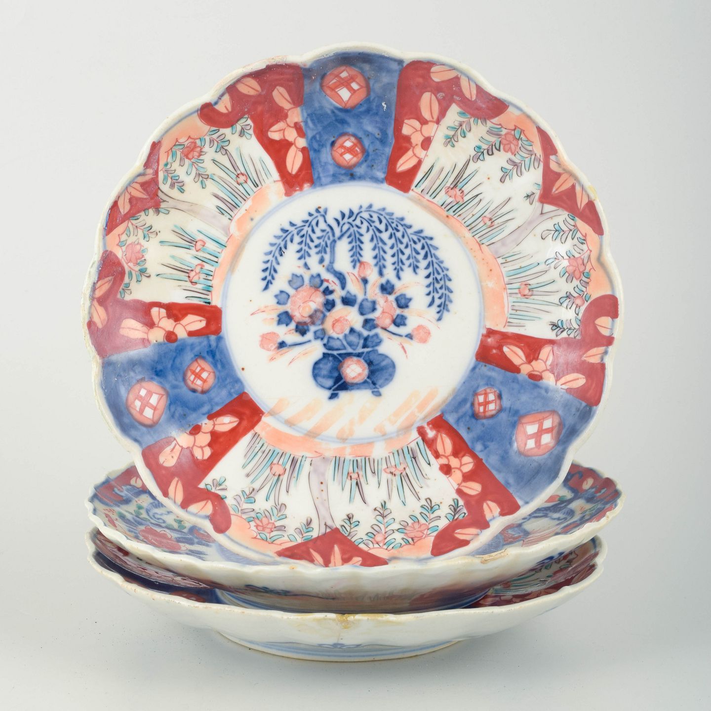 Imari-porcelæn, opkaldt efter udskibningshavnen Imari i Japan, blev fra 1600-tallet og frem til 1800-tallet eksporteret i store mængder til Europa. Karakteriseret ved den markante farvepalet – koboltblå underglasur kombineret med jernrød, grøn og ofte forgyldning – blev Imari hurtigt et af de mest efterspurgte japanske porcelæn i Vesten. Disse tallerkener repræsenterer den kunstneriske kombination af japansk dekorationstradition og international efterspørgsel, som præger perioden.