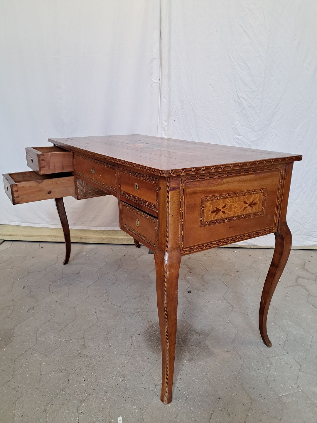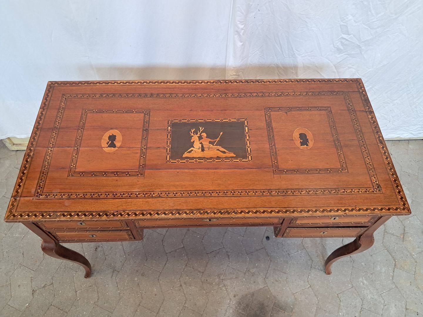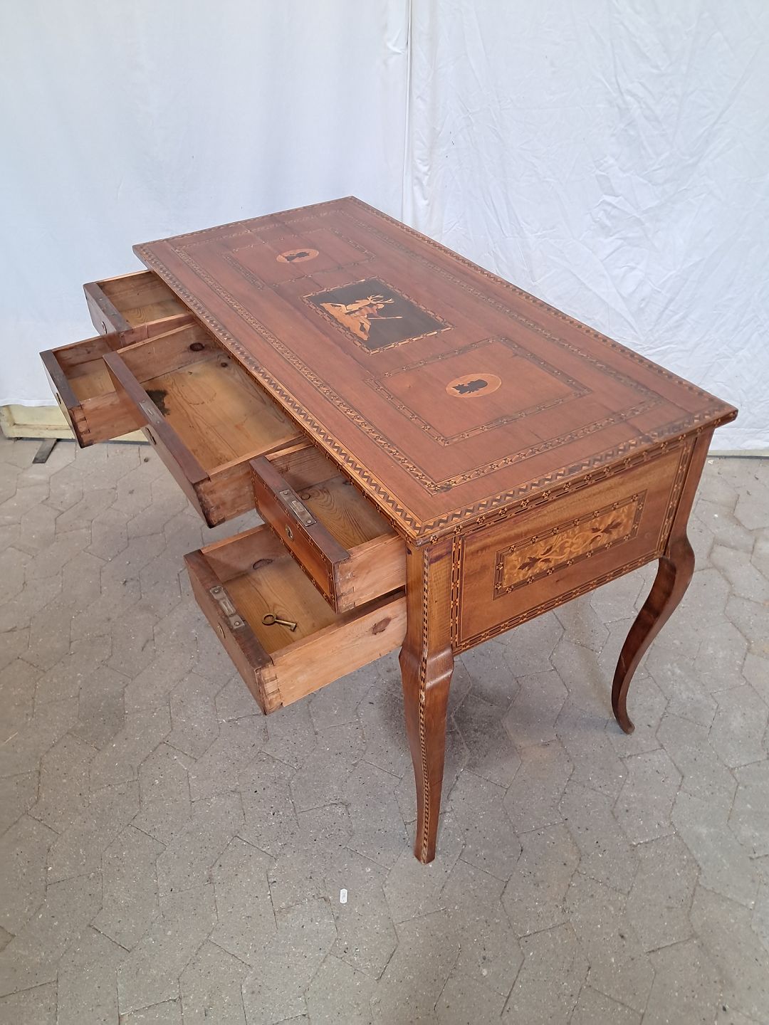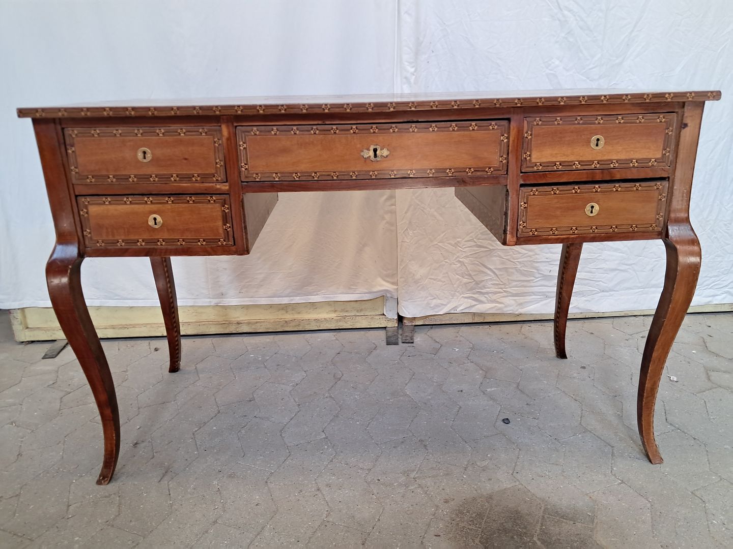 Skrivebord i fineret mahogni og nødetræ, fra 1930erne.