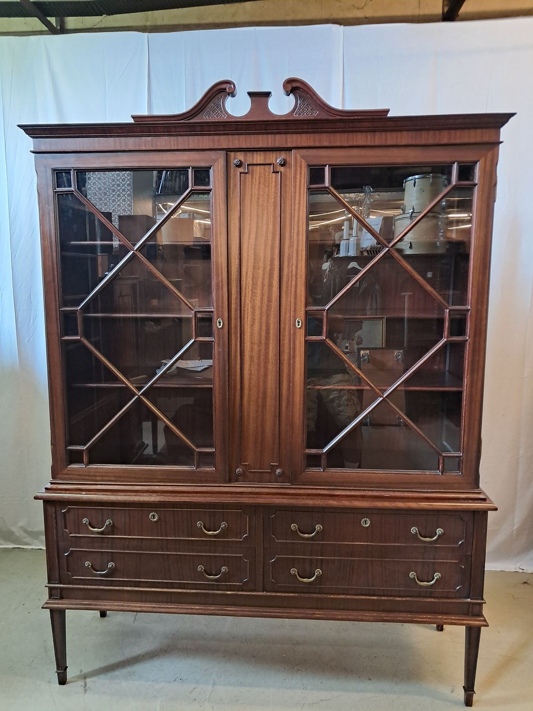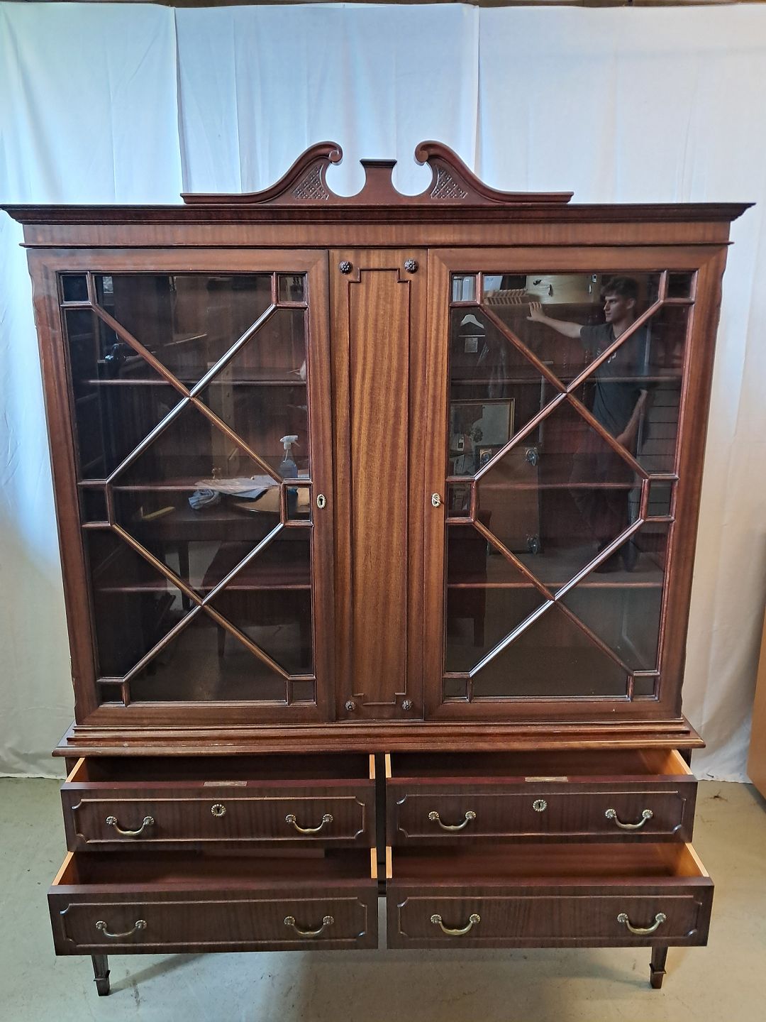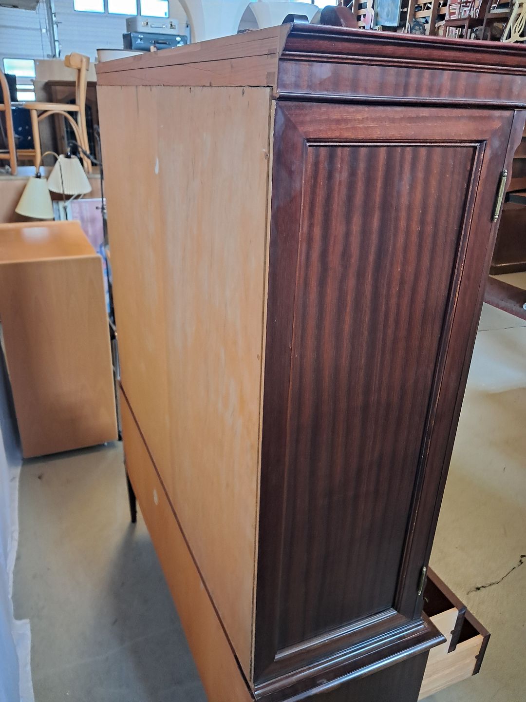Dækketøjsskab i fineret mahogni, fra 1980erne.