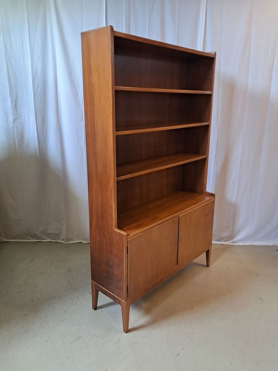Reol i fineret nødetræ, fra 1950-1960erne.