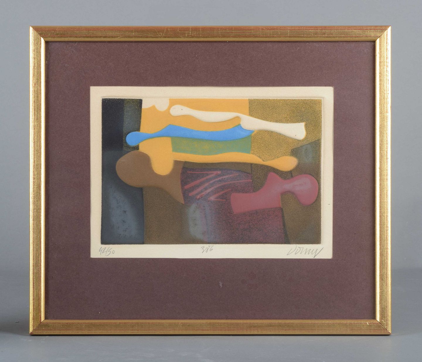 Et karakteristisk værk af den franske kunstner Bertrand Dorny, hvor abstrakte organiske former kombineres med stærke farver og en raffineret grafisk teknik.