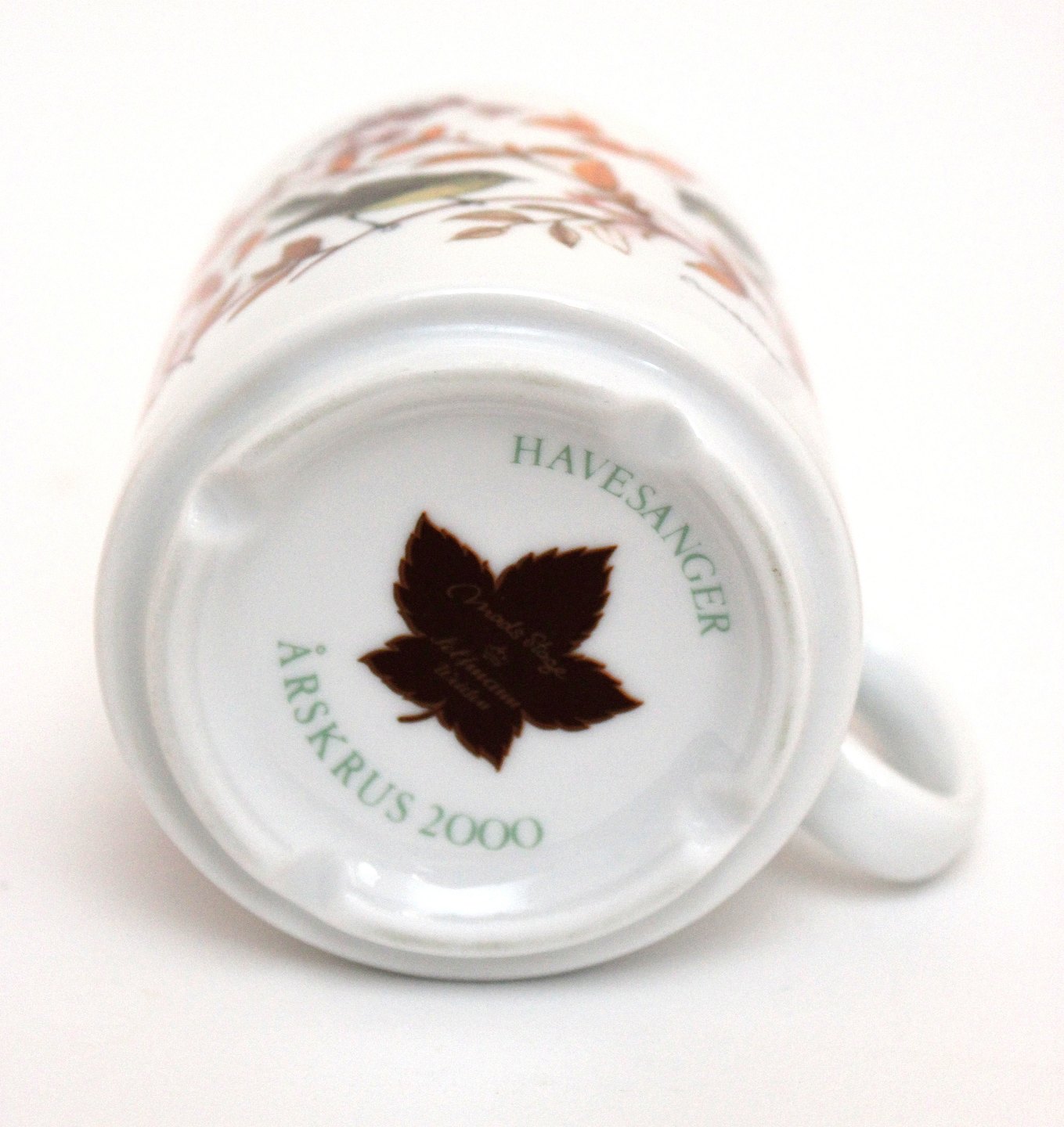 Mads Stage årskrus 2000. Havesanger. Højde 8,5 cm. Diameter 7,5 cm. Pris: 175 kr. stk. Lager: 5