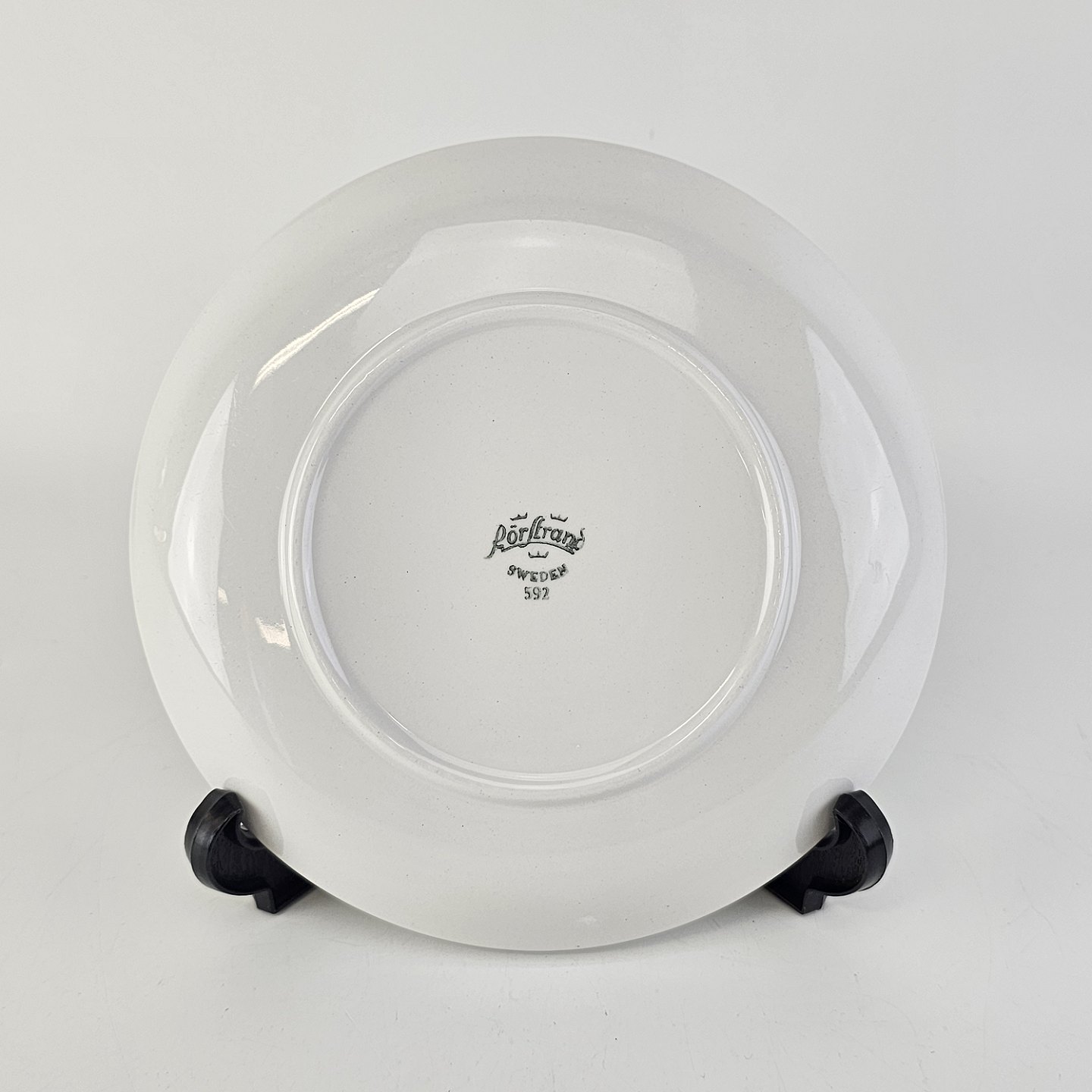 Flad tallerken fremstillet i hvid fajance med indstøbt sildebensmønster