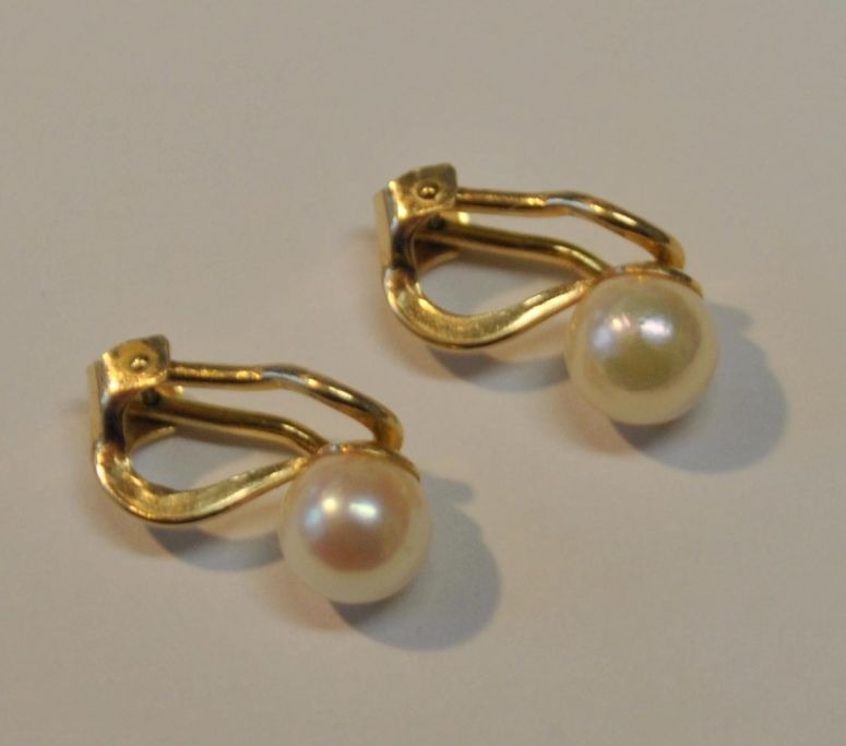 10 karat øreclips i rødguld med perler. 20. årh.