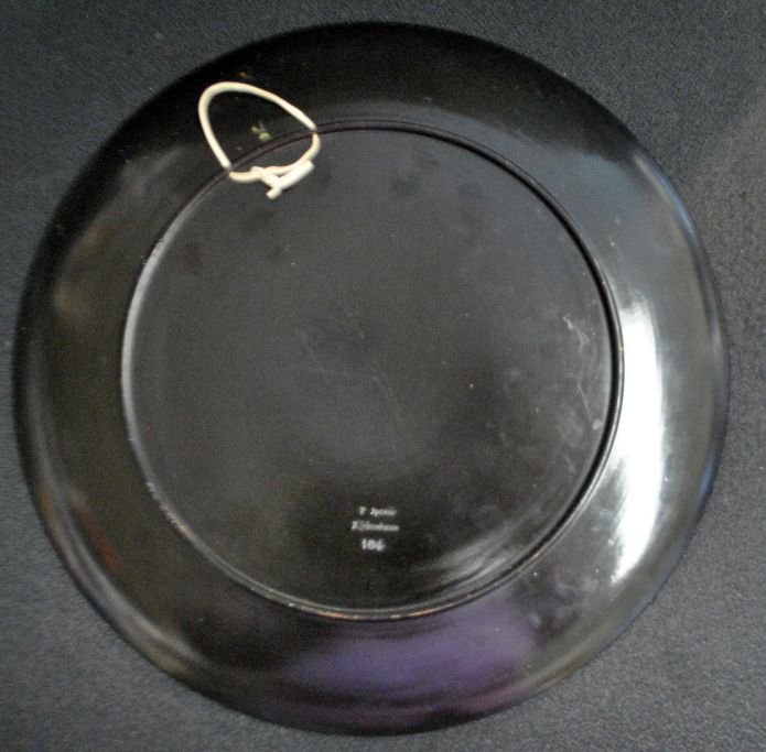 P. Ipsen, håndbemalet plaquette, 19. årh. no. 104, 19. årh. København, Danmark. Keramik. Håndmalet med åkander. Stemplet. Dia.: 29 cm,
