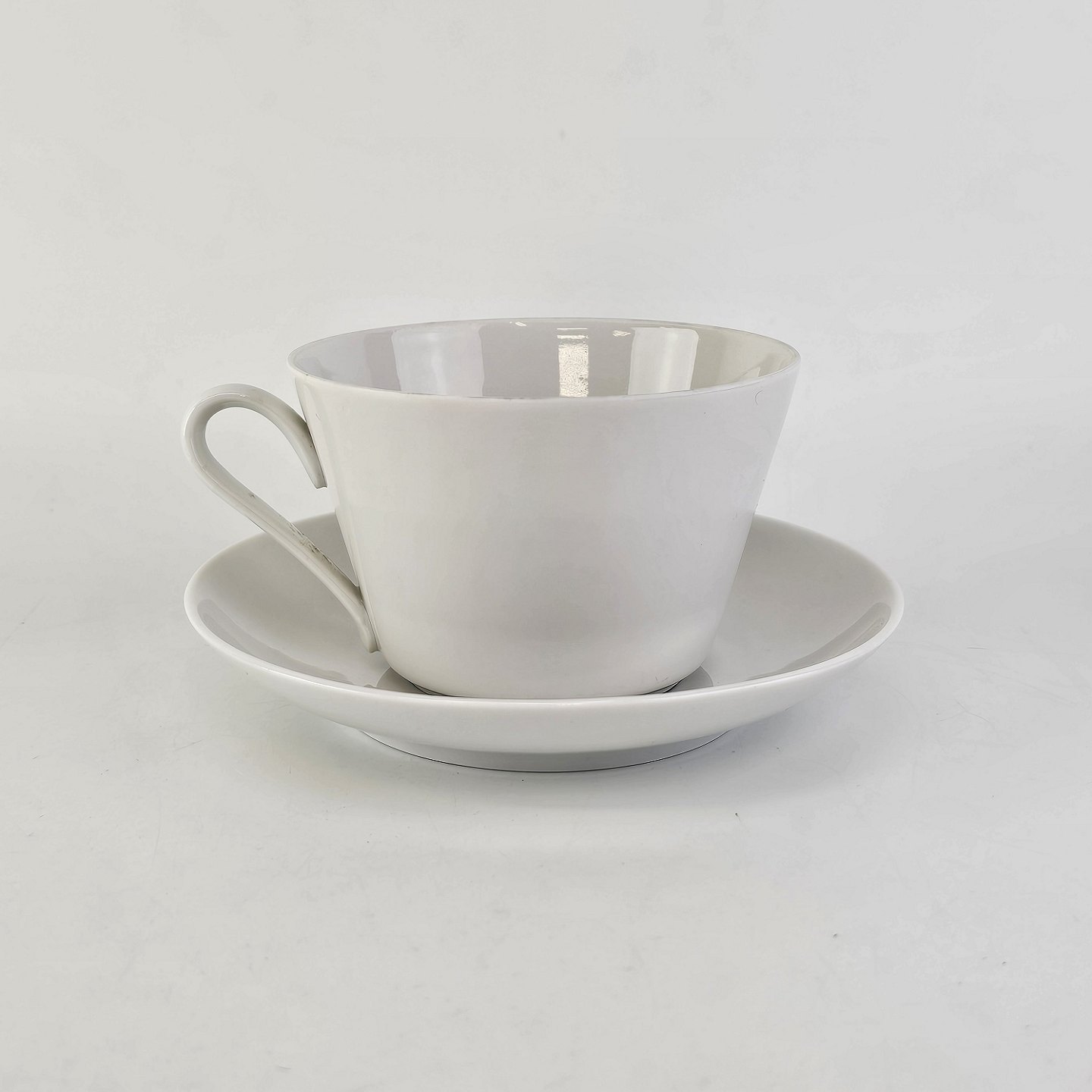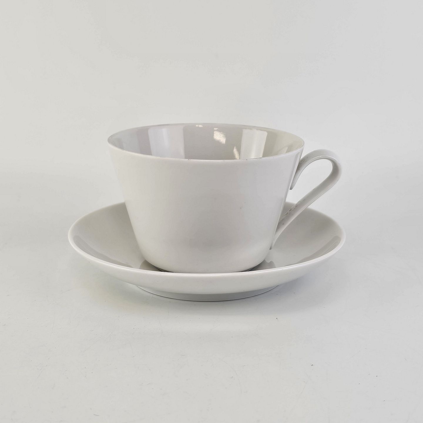 Kaffekop med underkop i porcelæn fra stellet Hvid Glasurfarvet