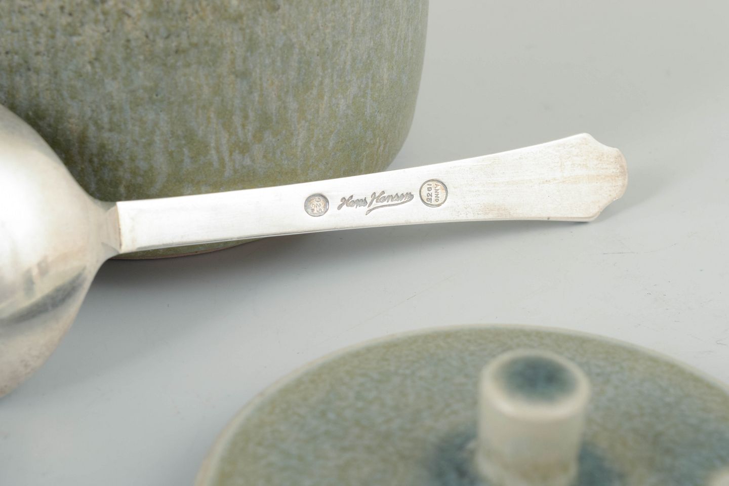 Signatur / mærke: Indridset “Palshus Denmark” og modelnr.; ske stemplet Hans Hansen, Sterling Denmark