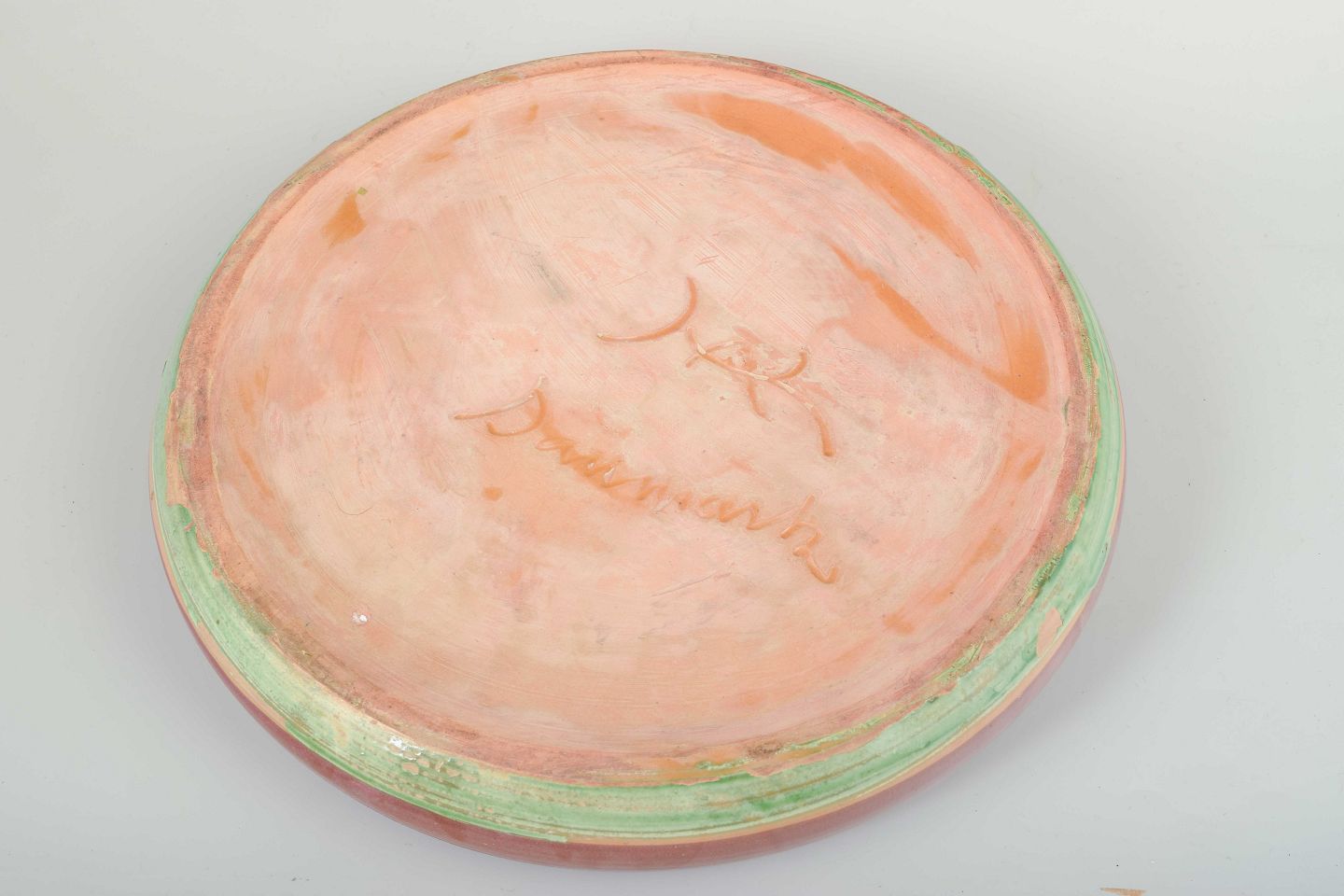 Dekorativt væg- eller serveringsfad i glaseret keramik.