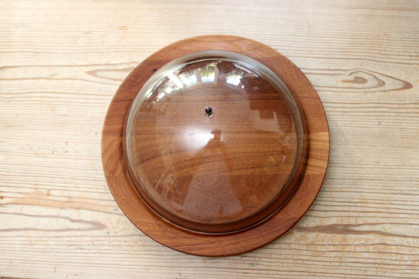 Osteklokke med smokefarvet plastlåg. Trykt Woodline DENMARK BK. Diameter 24,5 cm. Inderste diameter 18 cm. Højde 13 cm. Brugsridser på låget. Pris: 425 kr.
