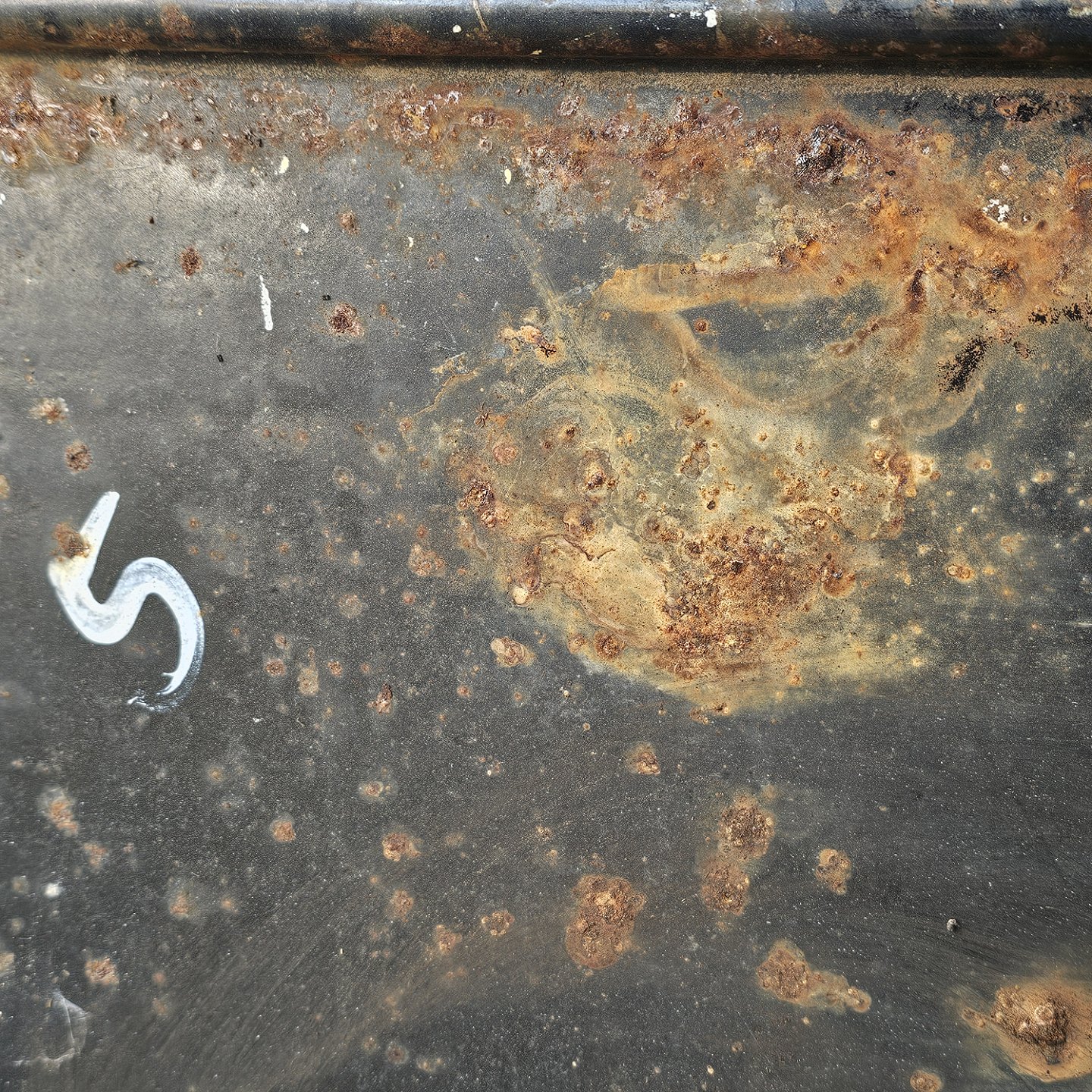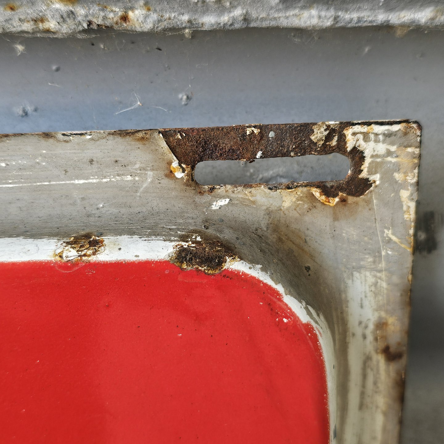 Fremstår med rust og brugsspor på bagsiden og i emaljen