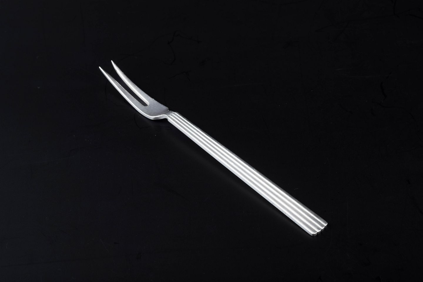 Sterling sølv pålægsgaffel i det ikoniske Bernadotte-mønster, designet af Sigvard Bernadotte. Det tidløse formsprog med parallelle rifler i skaftet gør bestikket til et af Georg Jensens mest populære og klassiske designs.