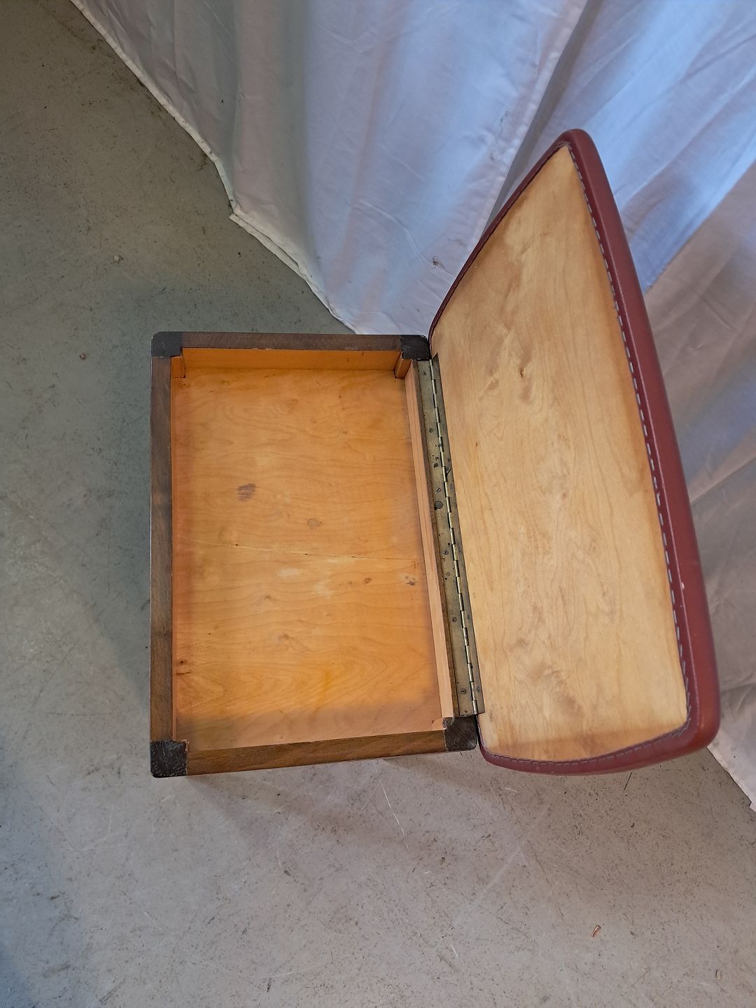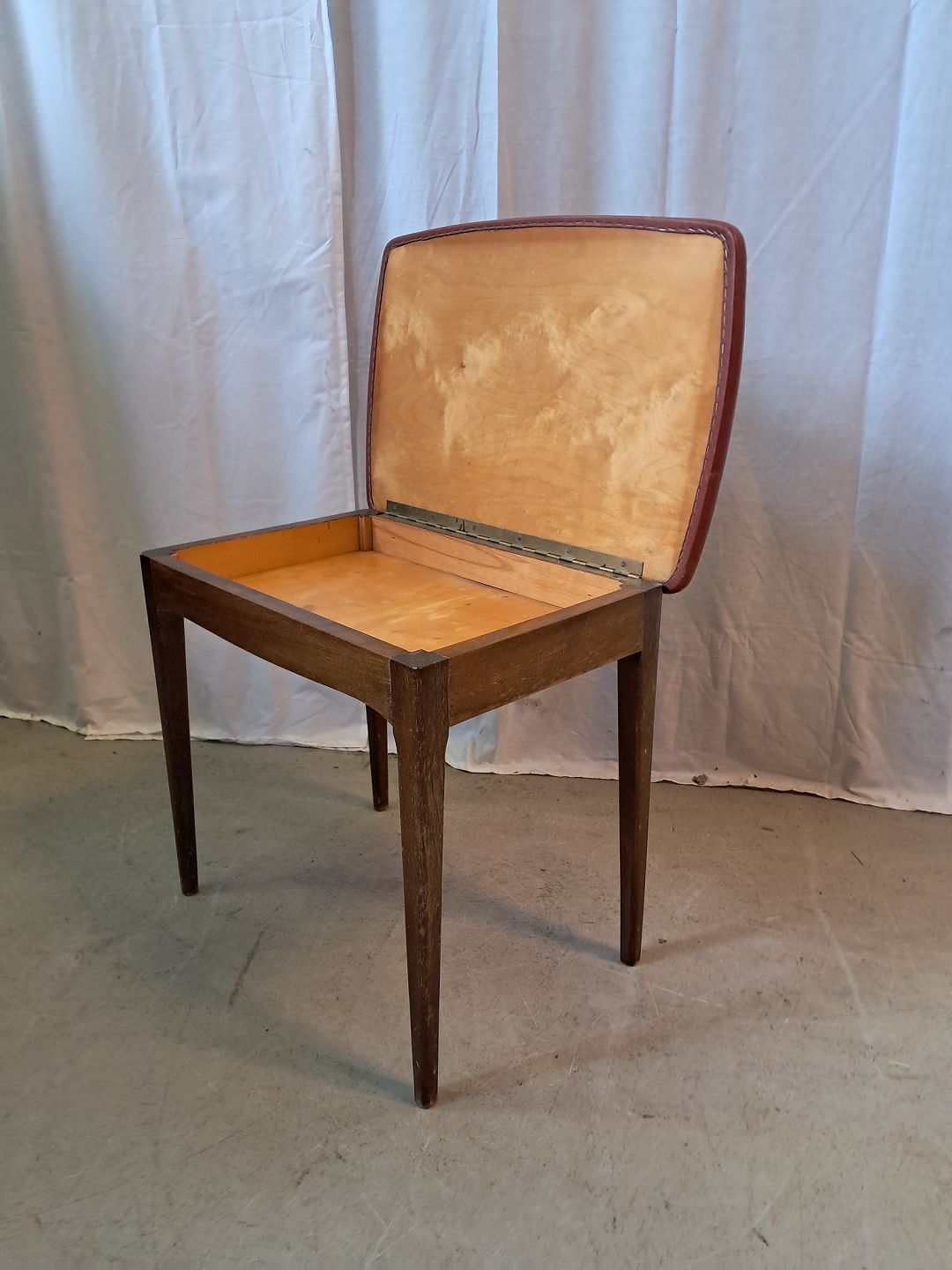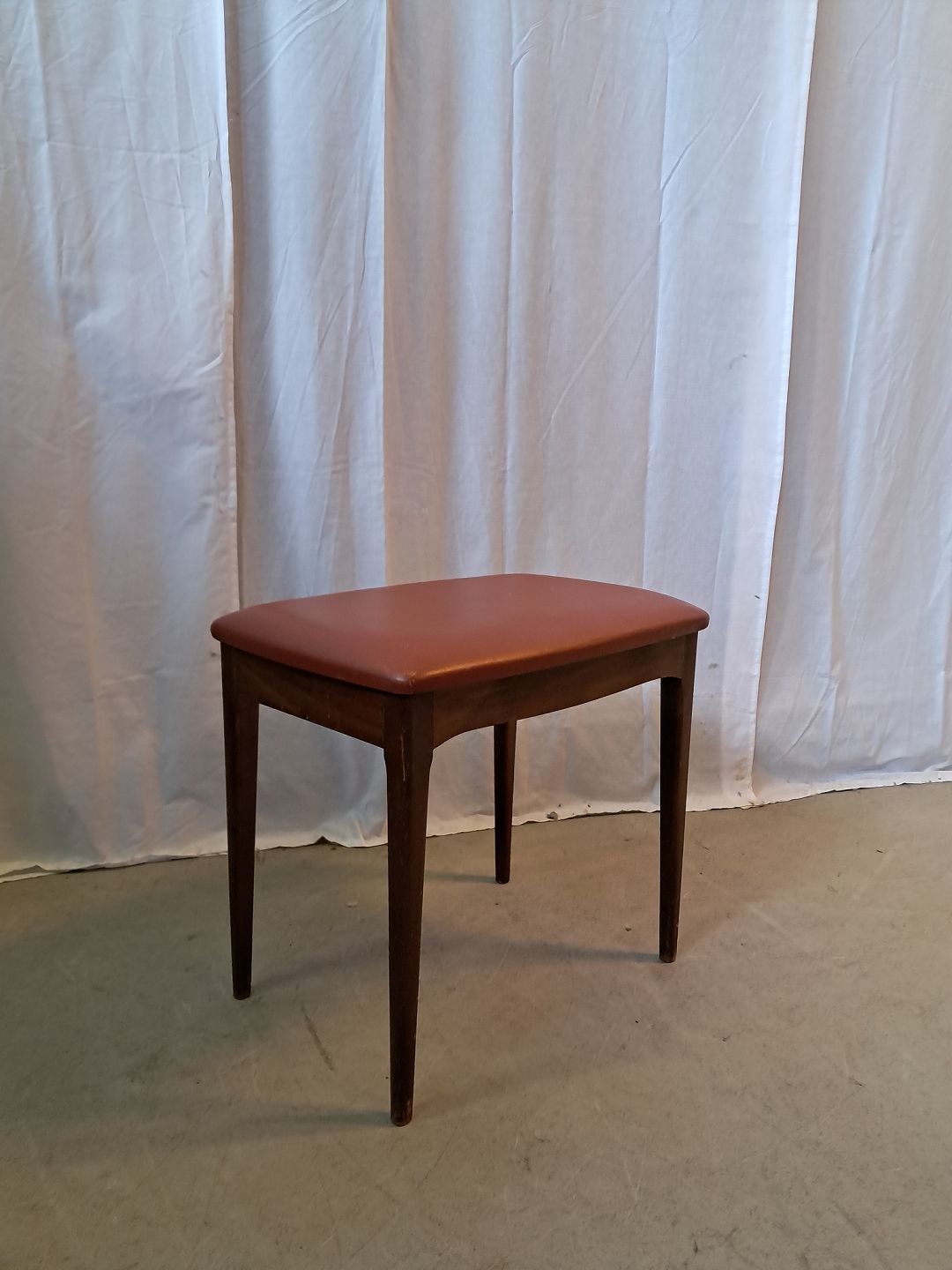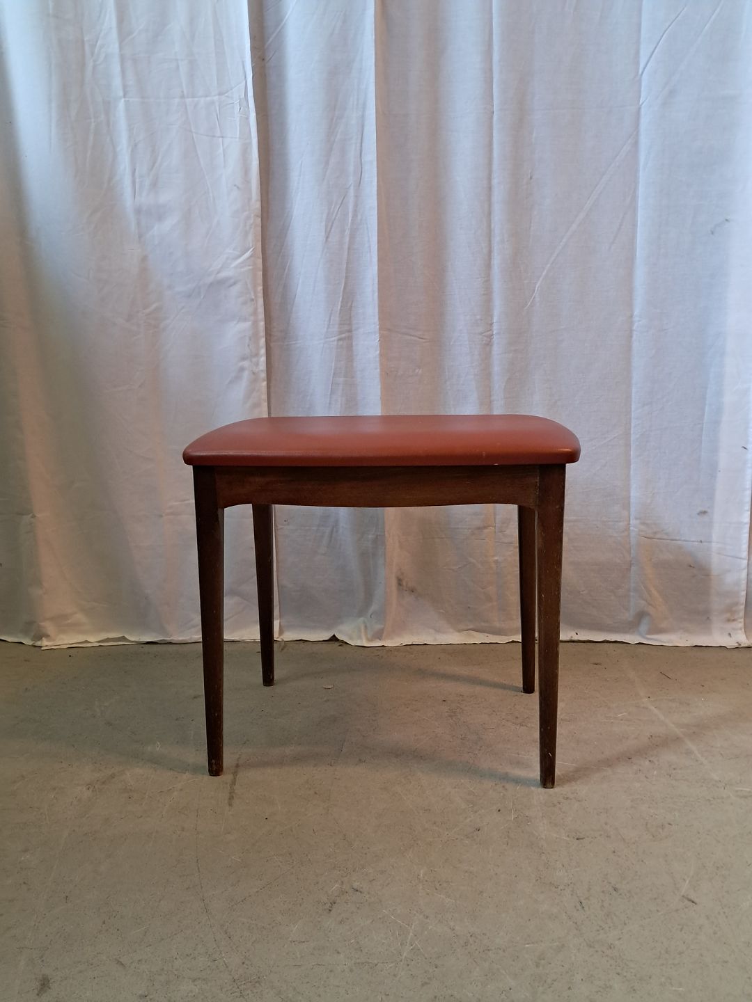Skammel i bøgetræ med læderbetræk, fra 1960erne.