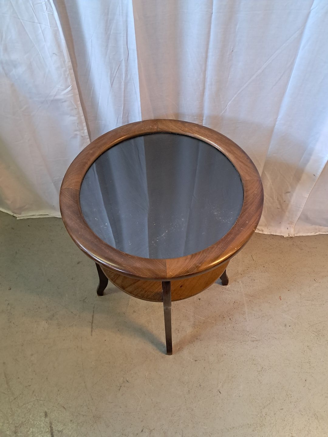 Sidebord i mahogni og bøgetræ med glasplade, fra 1920erne.