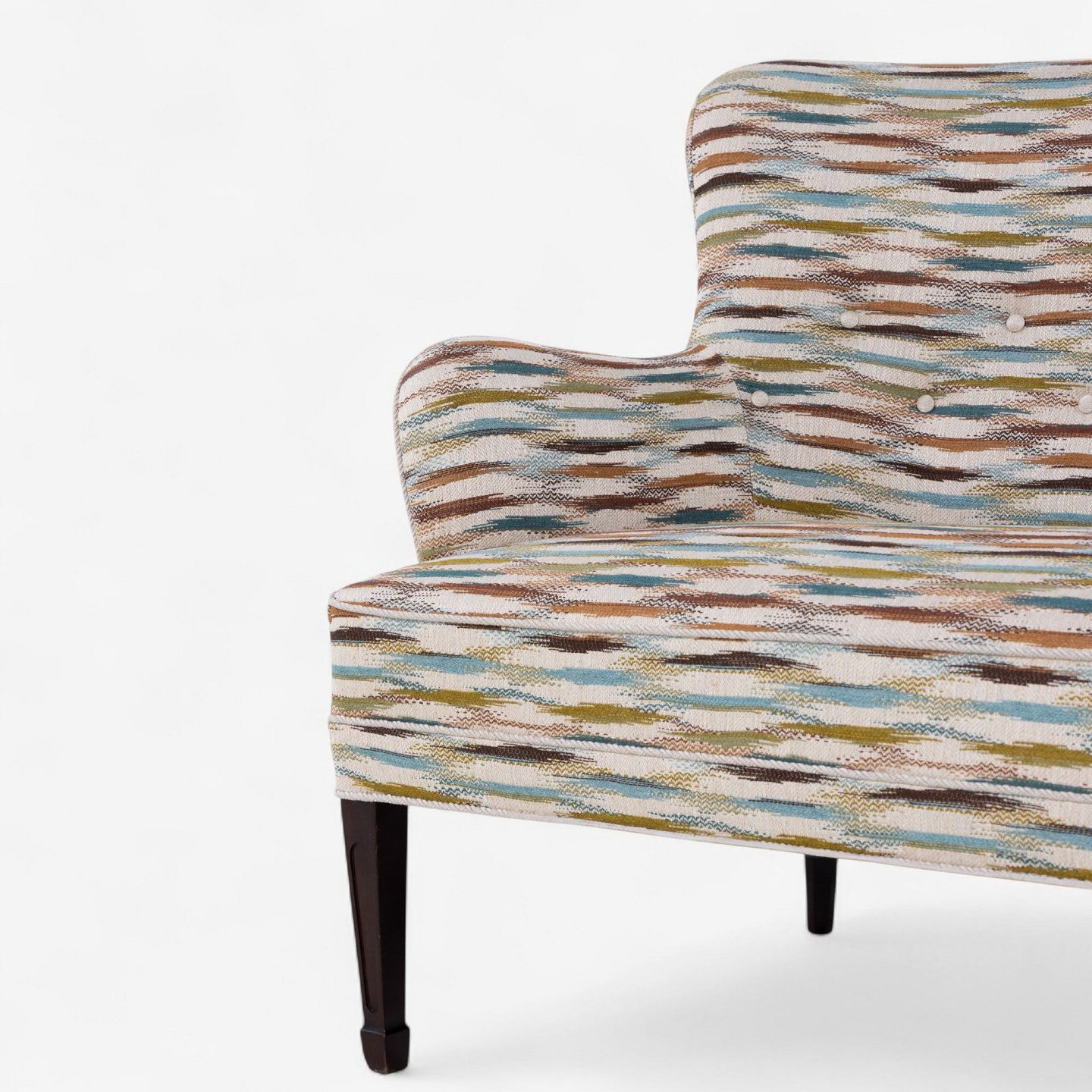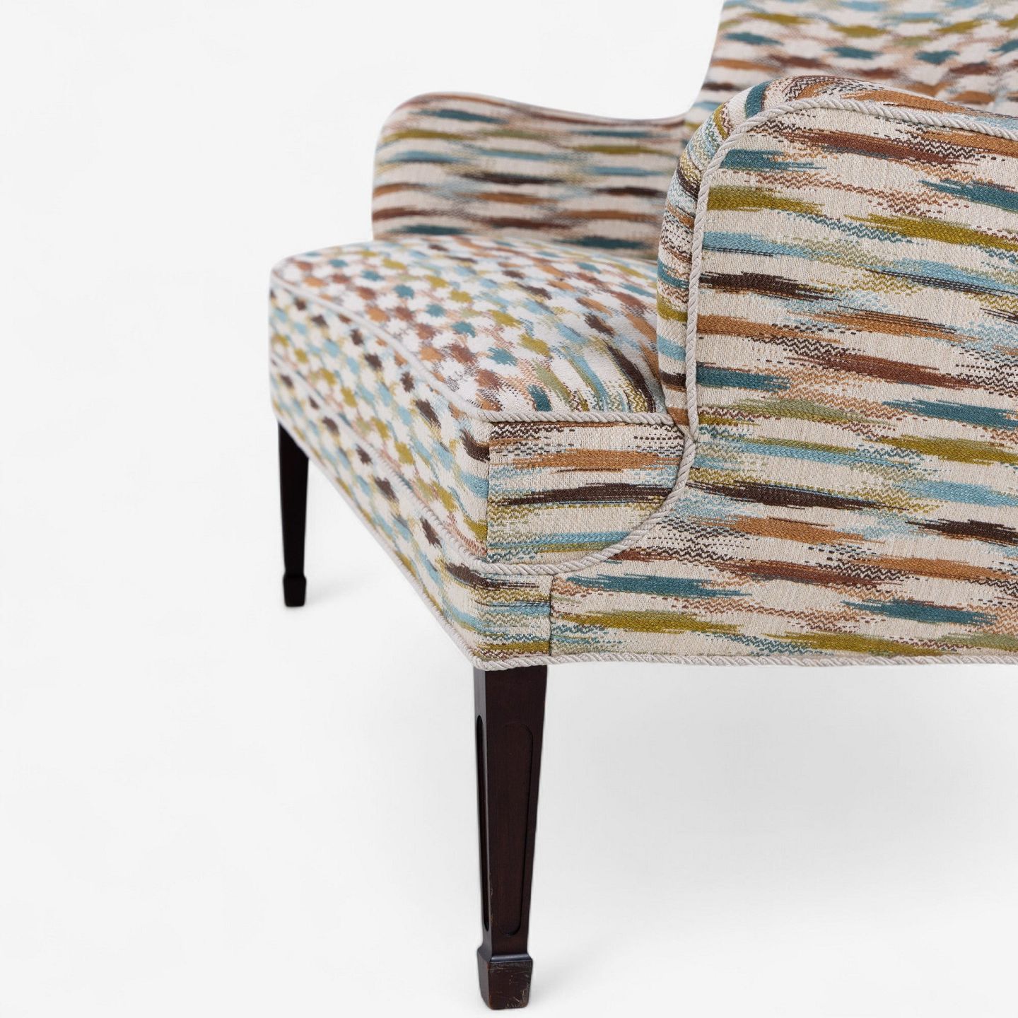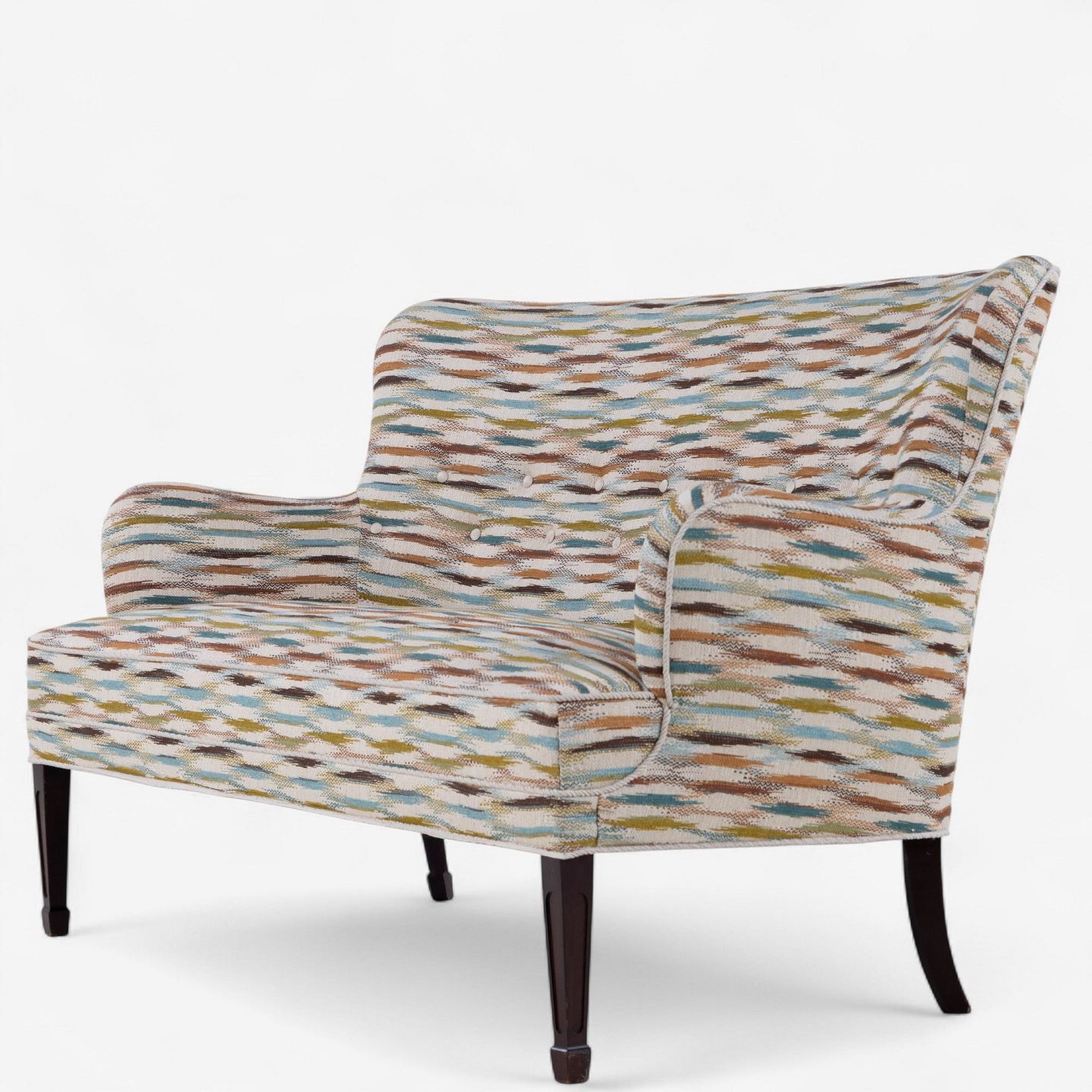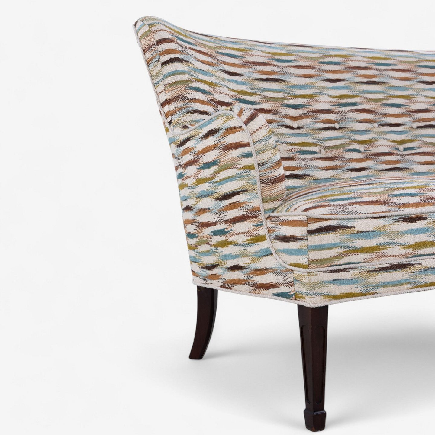 Sofa betrukket m. Felbrigg - Teal/Chestnut og ben i mørkbejdset mahogni.