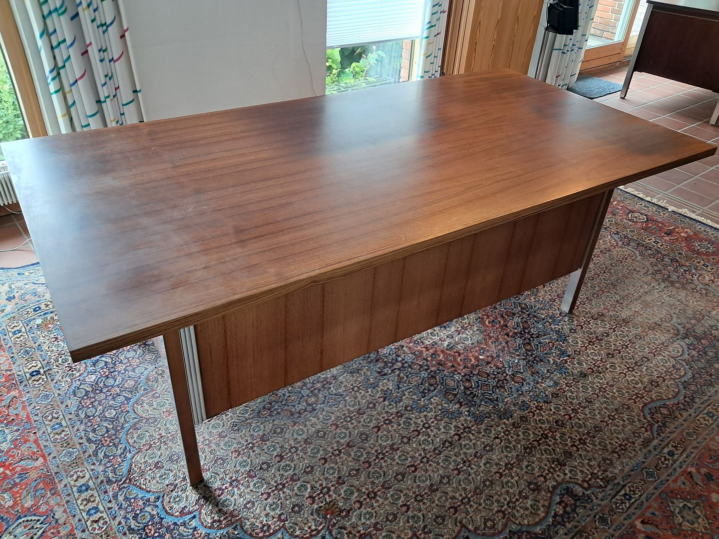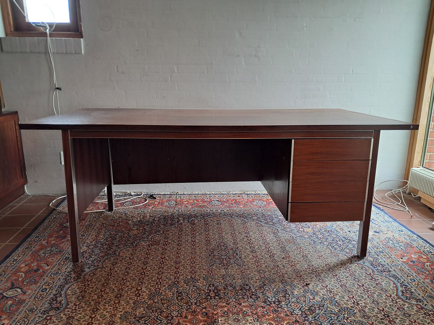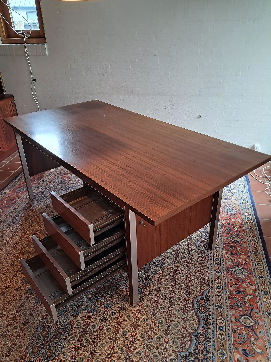 Skrivebord i fineret palisander og aluminium, fra 1970erne.