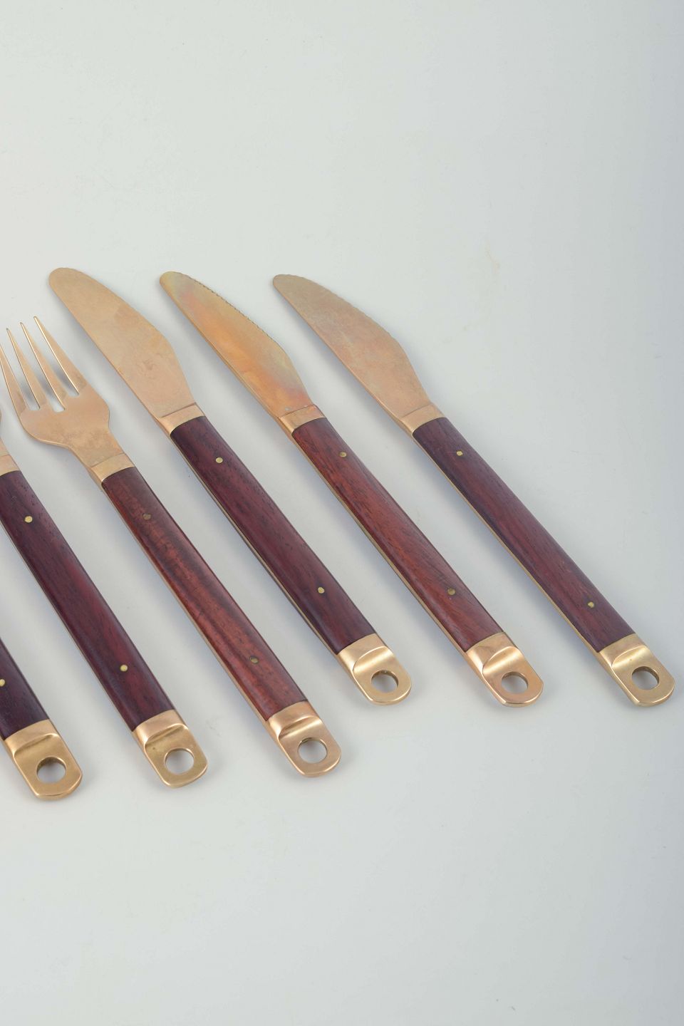Brøste. 3-personers middagsbestik af bronze og rosentræ, model 222.