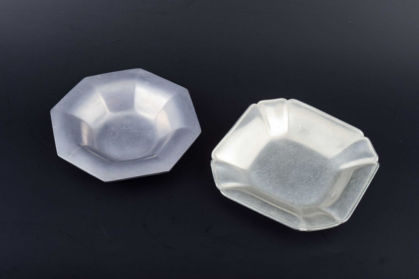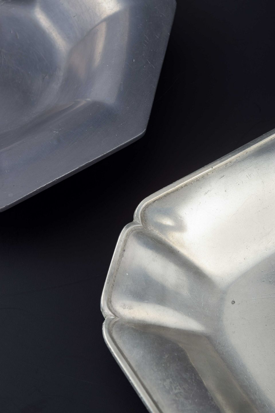 To tinfade, det ene ottekantet og det andet med afrundede, kantede hjørner. Stemplet med trekantet mærke "JUST DANMARK" samt modelnummer D 29.