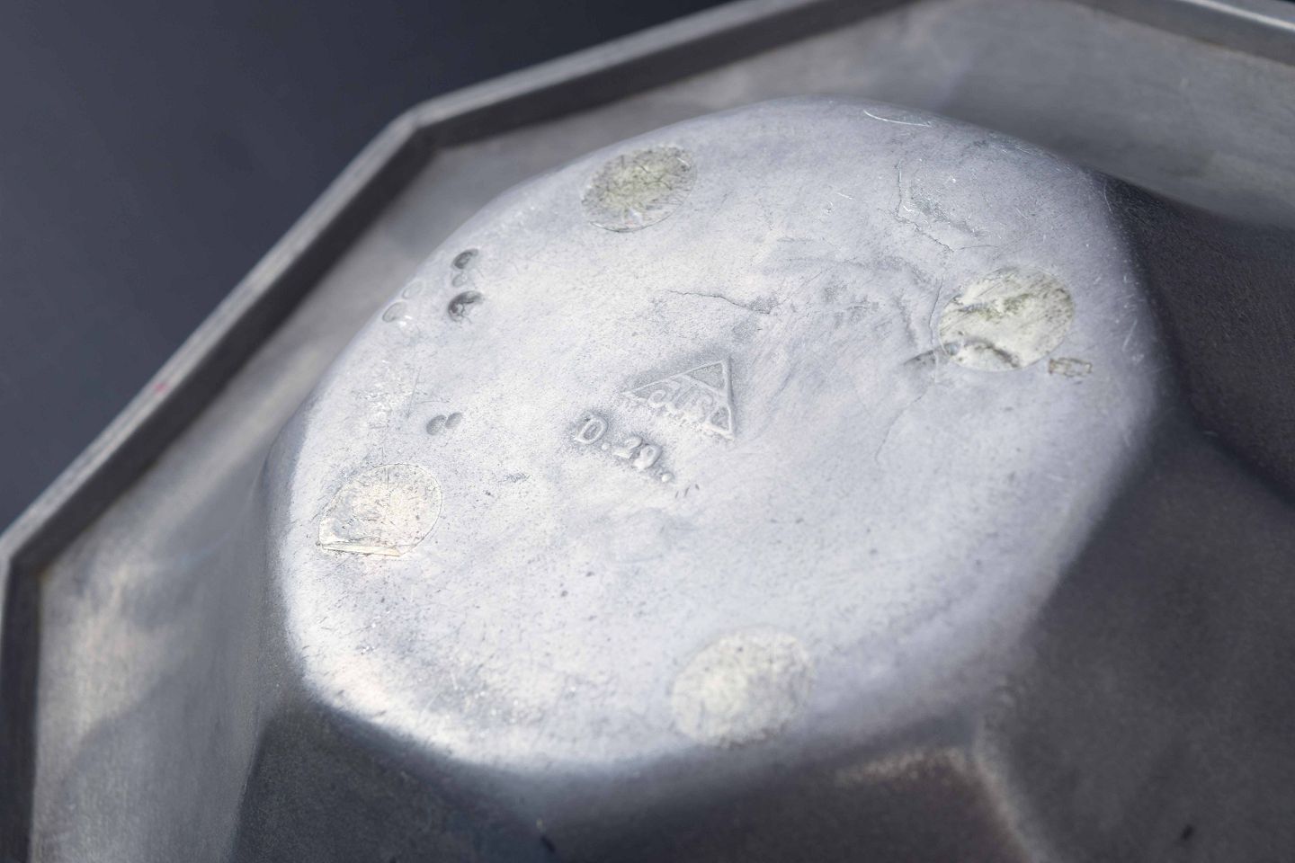 Et karakteristisk eksempel på Just Andersens funktionalistiske tinarbejder, hvor enkle geometriske former kombineres med forfinet håndværk. Et eftertragtet samlerobjekt og et stykke dansk designhistorie.