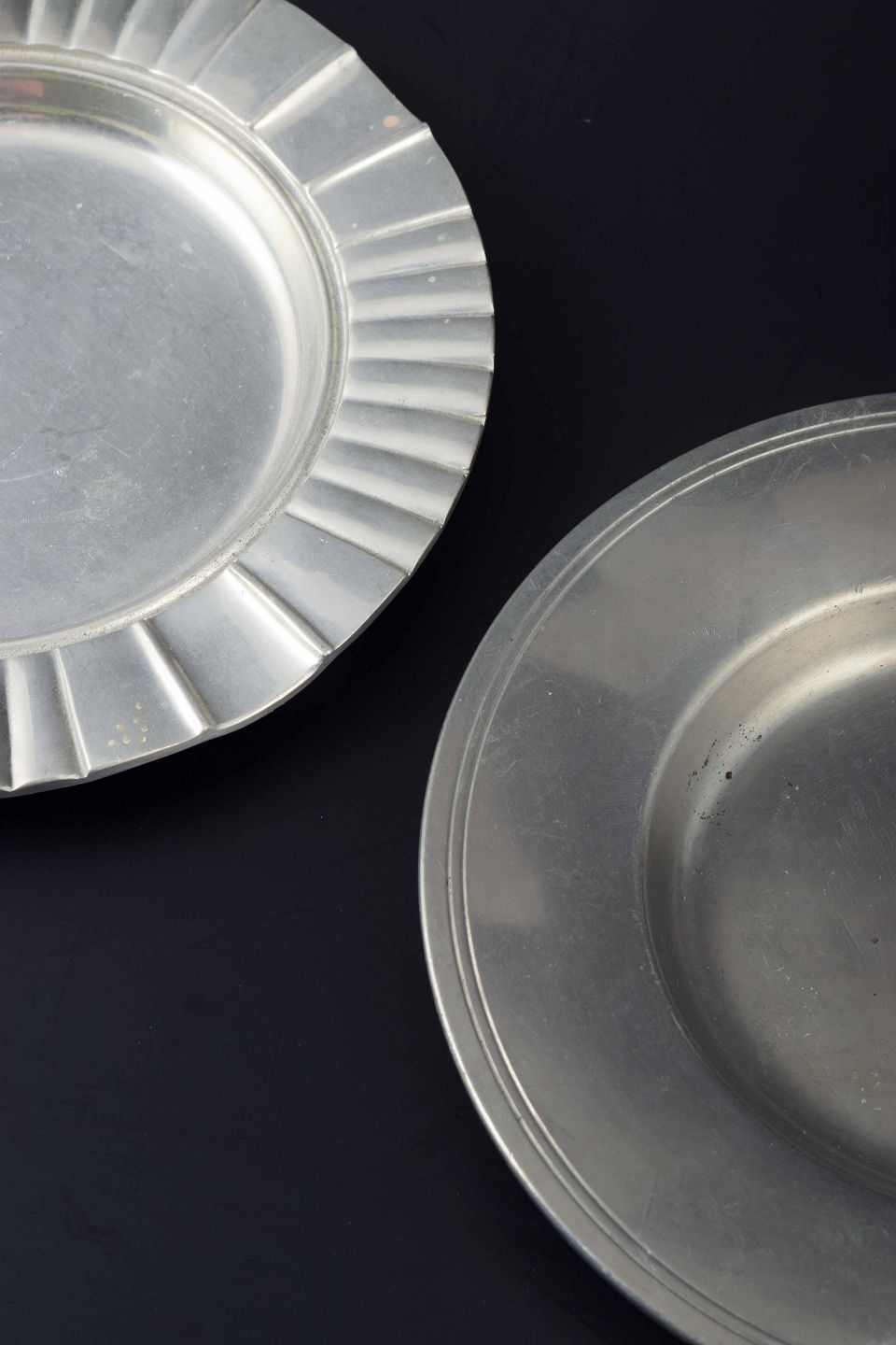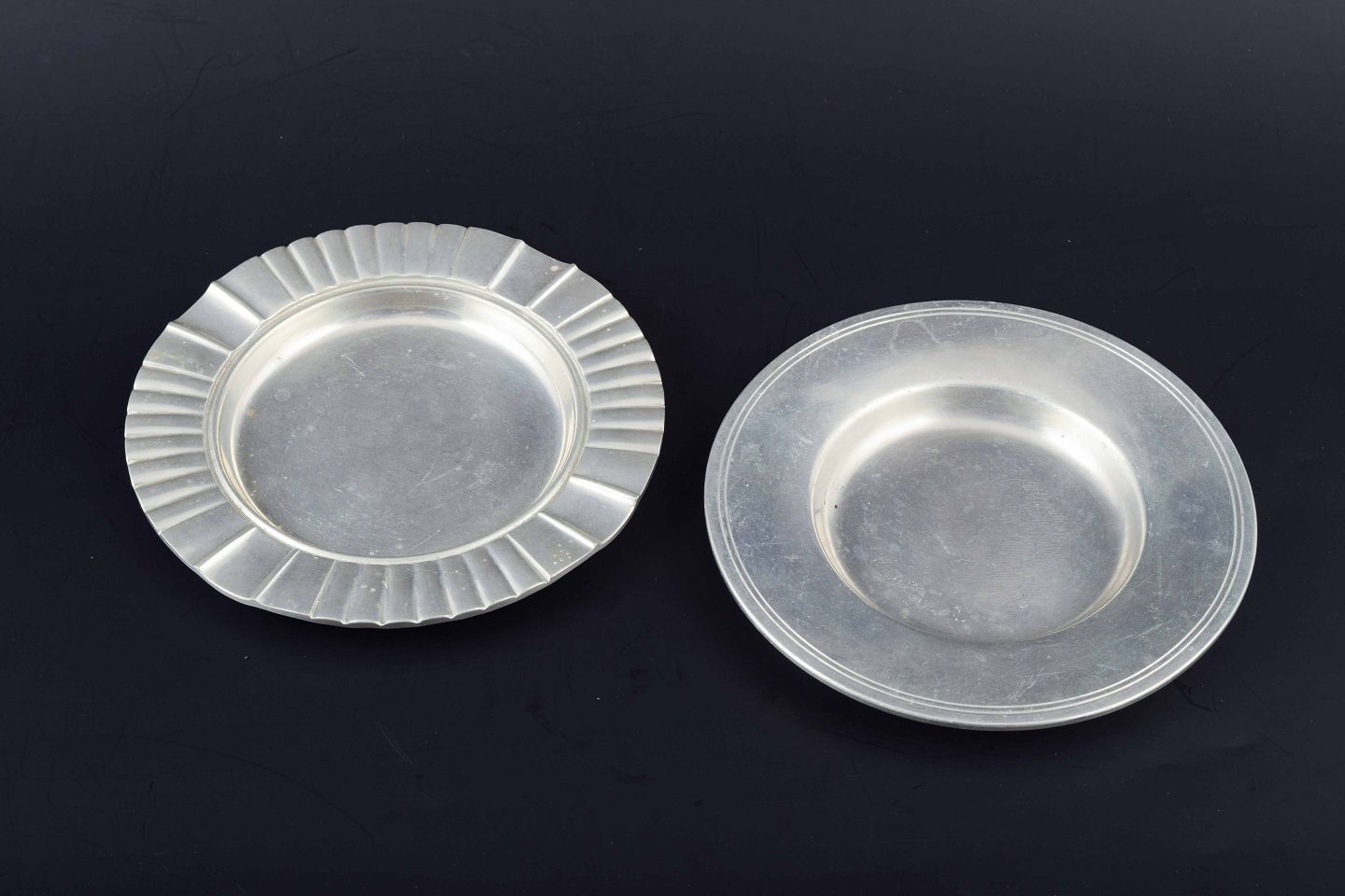 To fade i tin, det ene med riflet kant, det andet med enkel profilering.