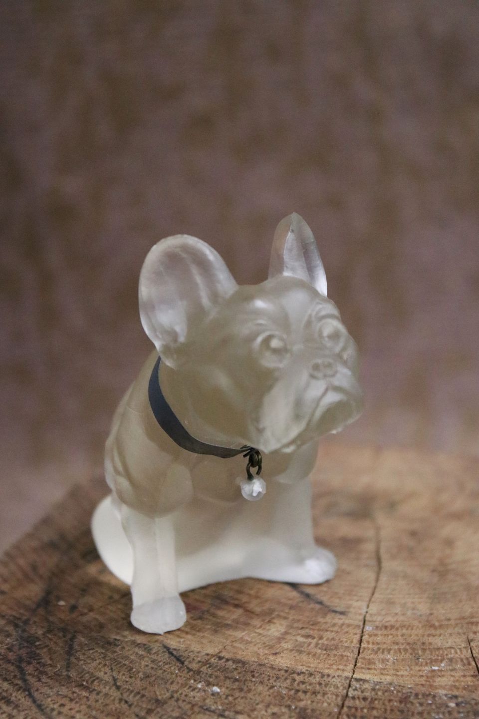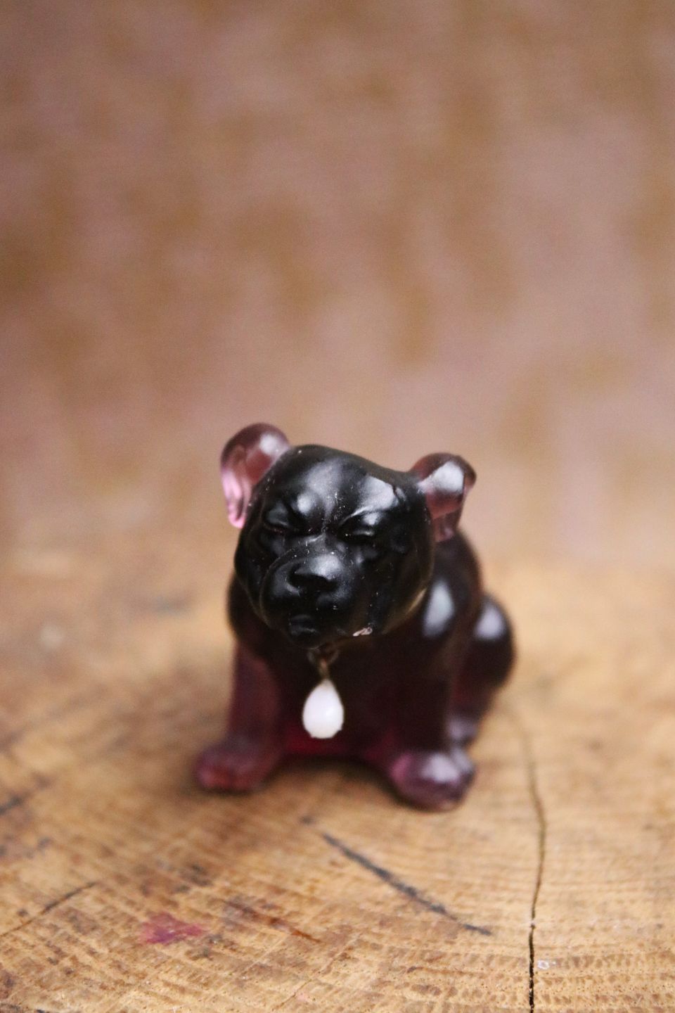 Dekorative , gamle små hunde i farvet glas med halsbånd.